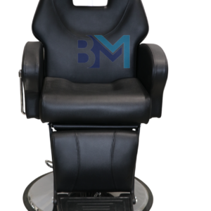 Silla de peluquería color negro con diseño clásico, fabricada en poli piel de PVC de alta calidad retardante al fuego. Apoyabrazos, asiento ergonómico para una mayor comodidad y confort.
