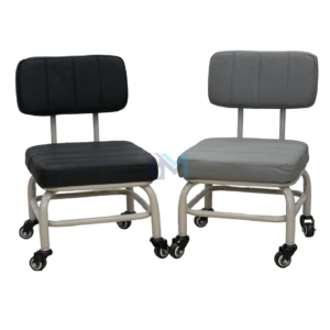 Taburete con base de ruedas de diseño ergonómico y asiento acolchado de especial grosor, para una excelente comodidad y confort.