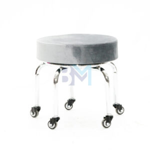 Taburete sin respaldo en polipiel con base de ruedas o base fija, hidráulico y altura ajustable. Diseño con detalle plateado en los bordes, asiento ergonómico y acolchado de grosor especial para una excelente comodidad y confort.