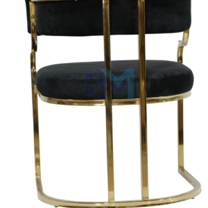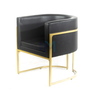 Silla tapizada en polipiel disponible en color negro , con estructura en acero dorado. Su silueta sencilla y su amplio respaldo la hacen una silla muy cómoda y moderna.