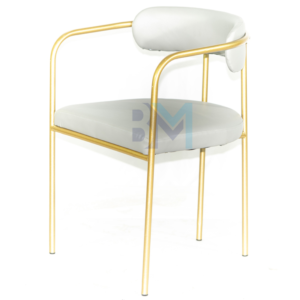 Silla tapizada en polipiel , con estructura en acero dorado. Su silueta sencilla la hacen una silla muy cómoda y moderna.