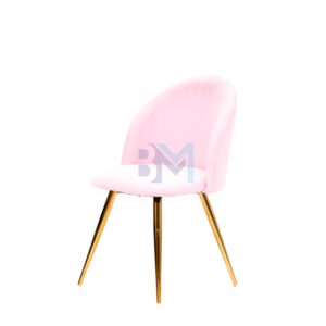 Silla de manicura en terciopelo color rosado , disponible con patas doradas . Su silueta sencilla y su amplio respaldo la hacen una silla muy cómoda y moderna.