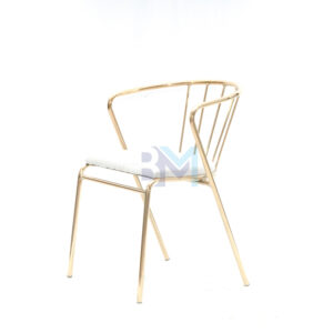 Silla tapizada en terciopelo gris claro, con estructura en acero dorado. Su silueta sencilla la hacen una silla muy cómoda y moderna.