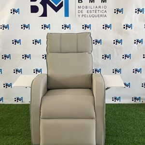 Sillón de pedicura tapizado en tela color beige y blanco, funcional y versátil para cualquier centro de belleza. Su diseño ofrece comodidad y confort para los clientes, es ideal para múltiples funciones y así optimizar el espacio.