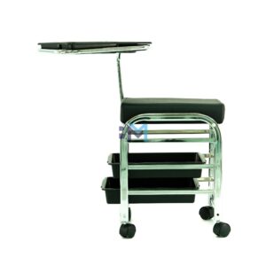 Carrito de manicura y pedicura con bandeja auxiliar con subdivisiones, cojín y tres cajones deslizantes, diseñado especialmente para uso profesional. Sus ruedas giratorias permiten su movilidad fácilmente.