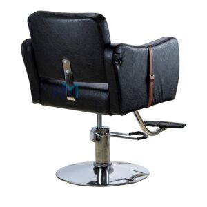 Silla de peluquería con un diseño clásico fabricada en polipiel de PVC de alta calidad retardante al fuego. Interior de PU inyectado con estructura metálica.