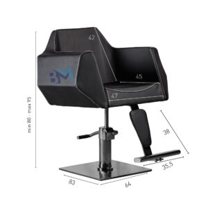 Silla de peluquería con un diseño moderno fabricada en polipiel de PVC de alta calidad retardante al fuego. Interior de PU inyectado con estructura metálica.