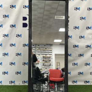Espejo con marco negro y cuadros decorativos negros y blanco perlado, aportará un toque de estilo y distinción a su peluquería, barbería o estética. Este espejo combina funcionalidad y estilo, convirtiéndose en un elemento imprescindible en tu centro.
