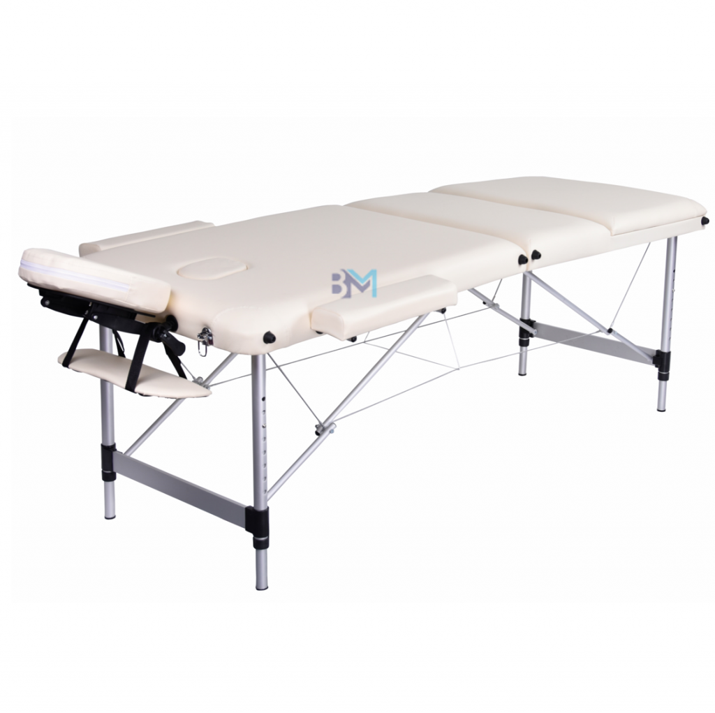 Camilla blanca portátil plegable tres cuerpos con altura ajustable