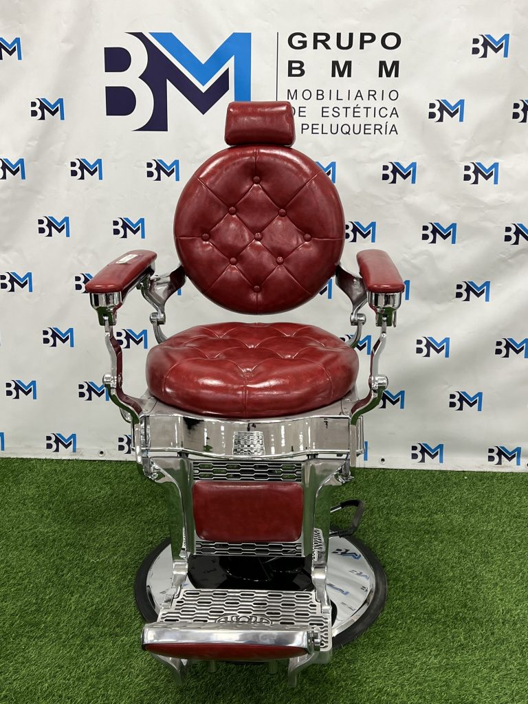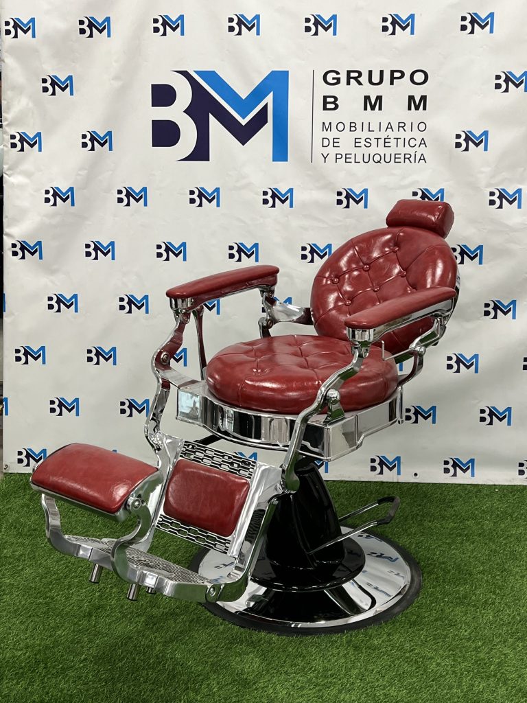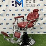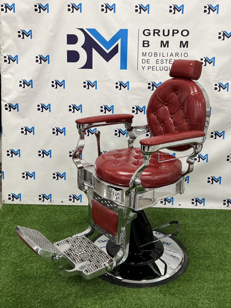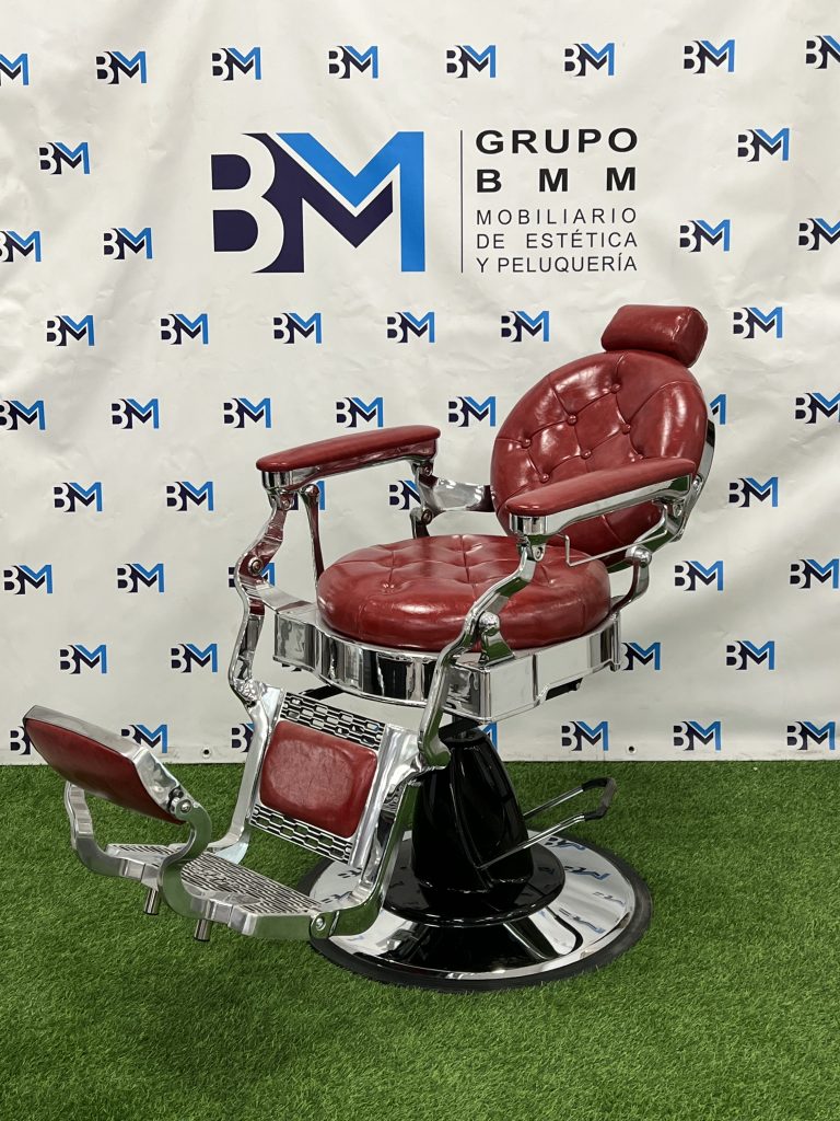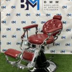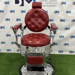 Sillón de barbería vintage rojo y plata