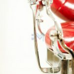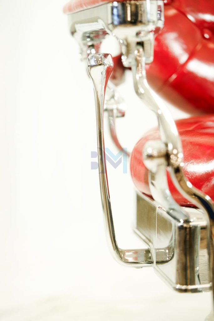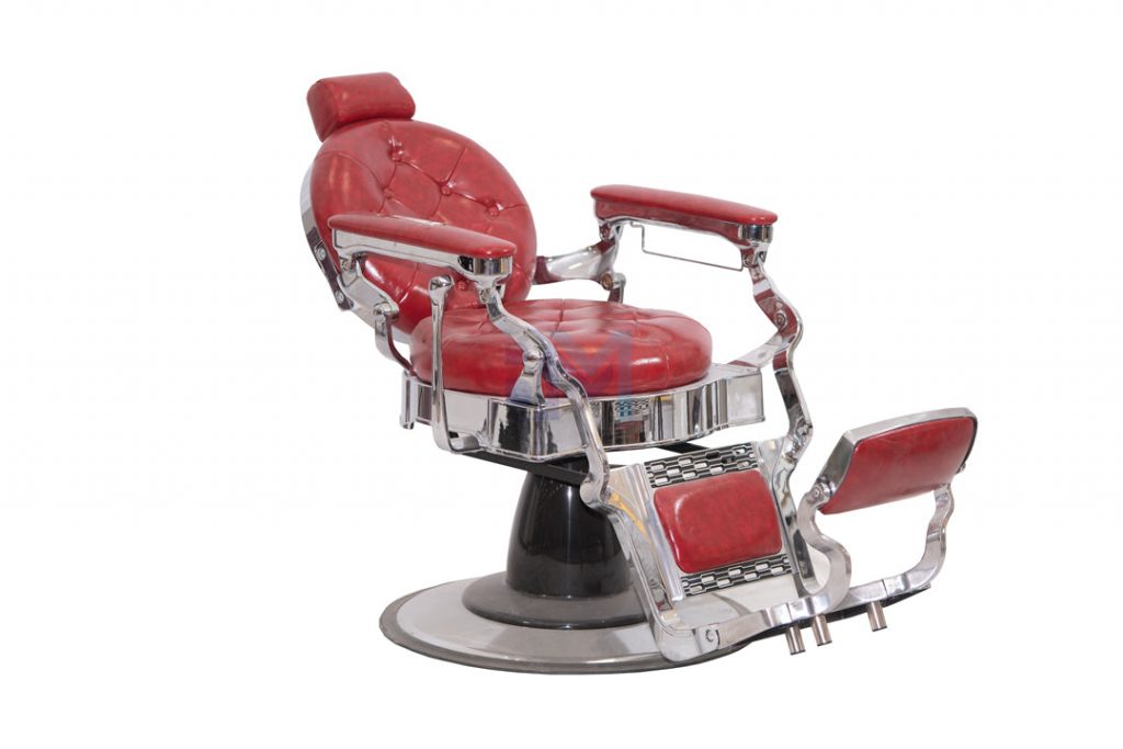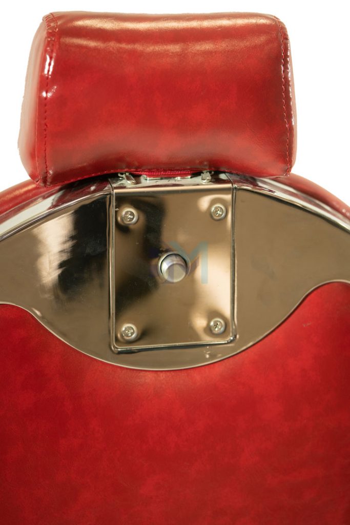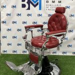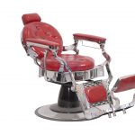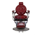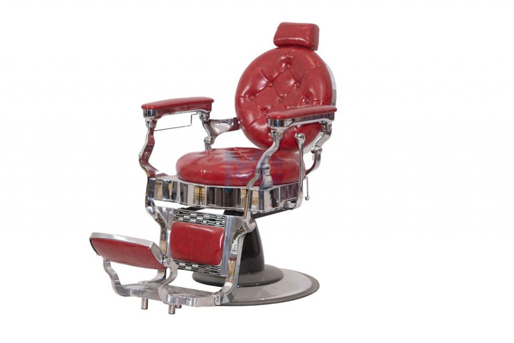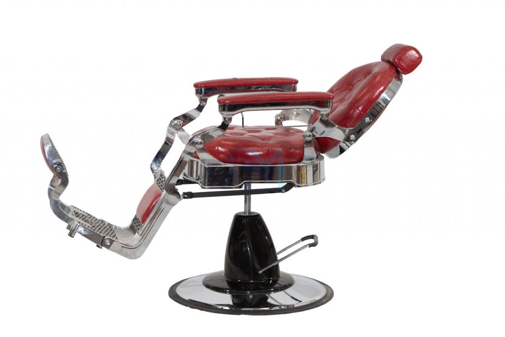 Sillón de barbería vintage rojo y plata