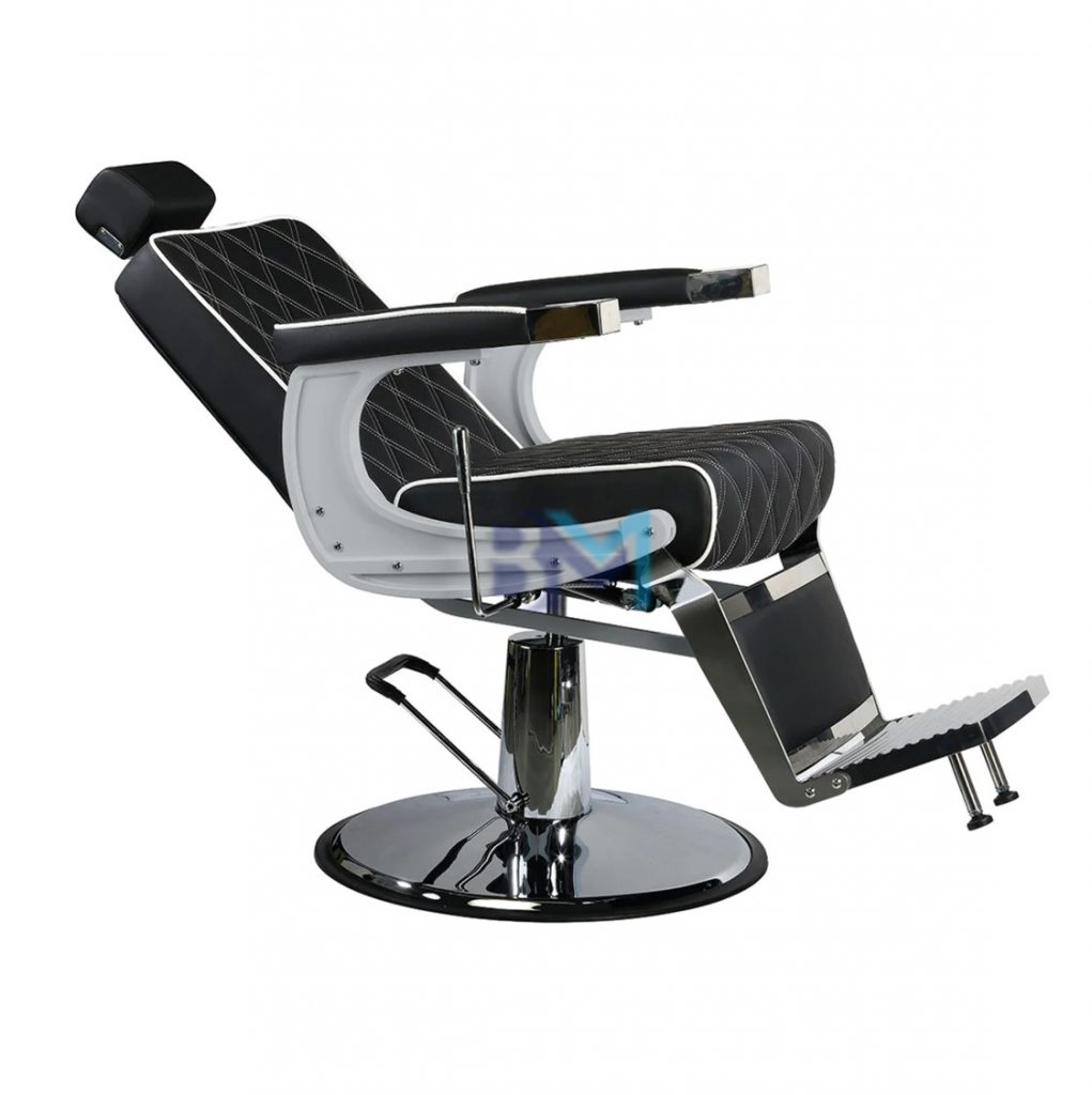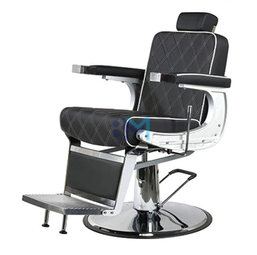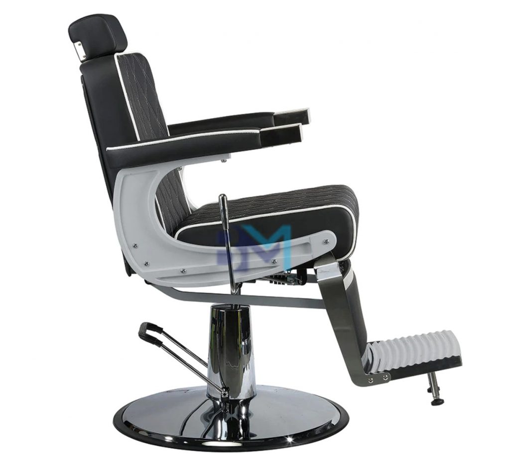 Sillón de barbería estilo clásico negro y plata