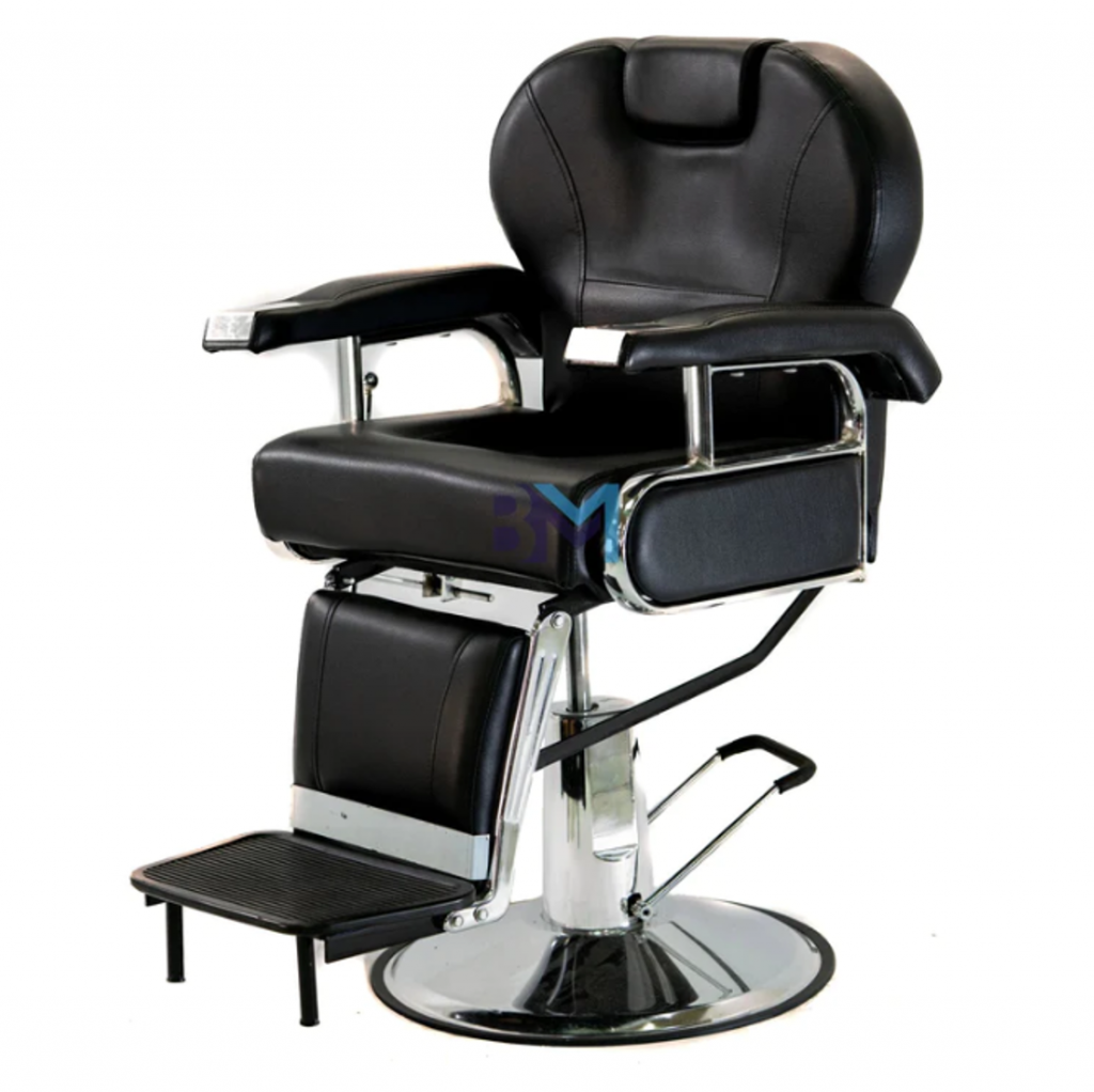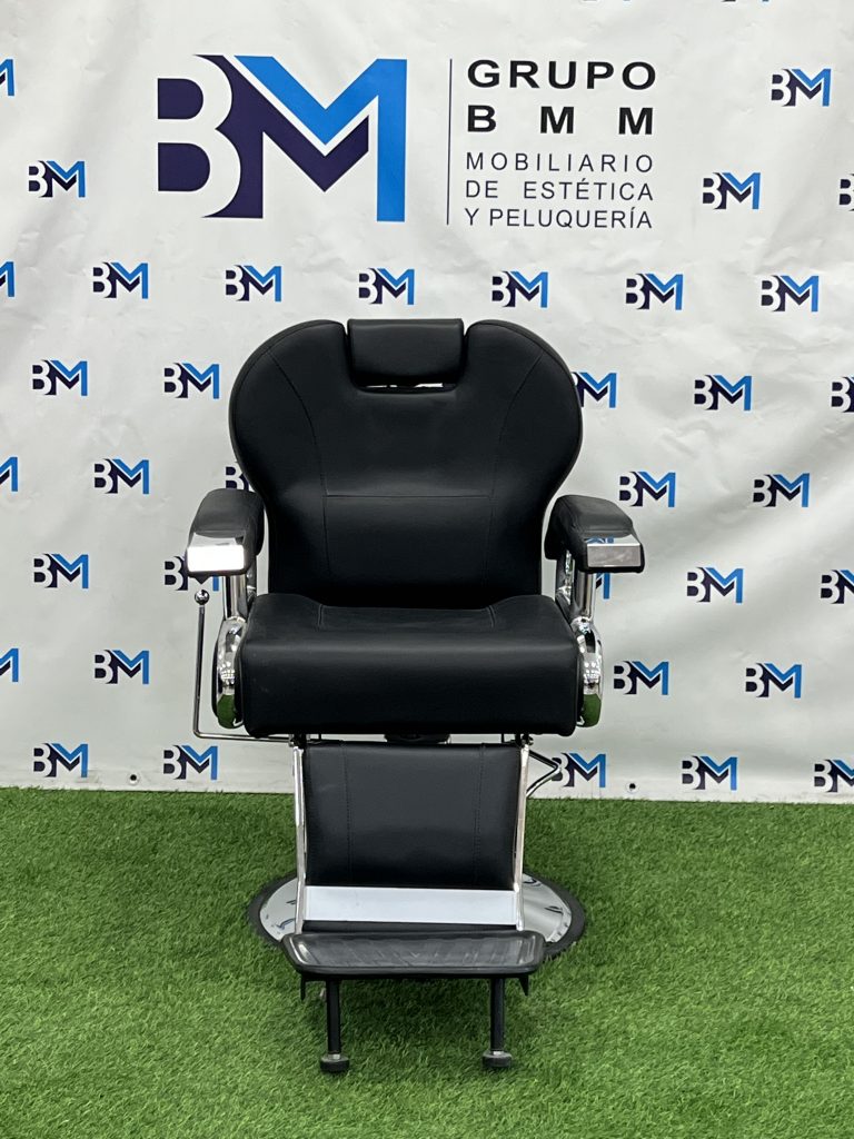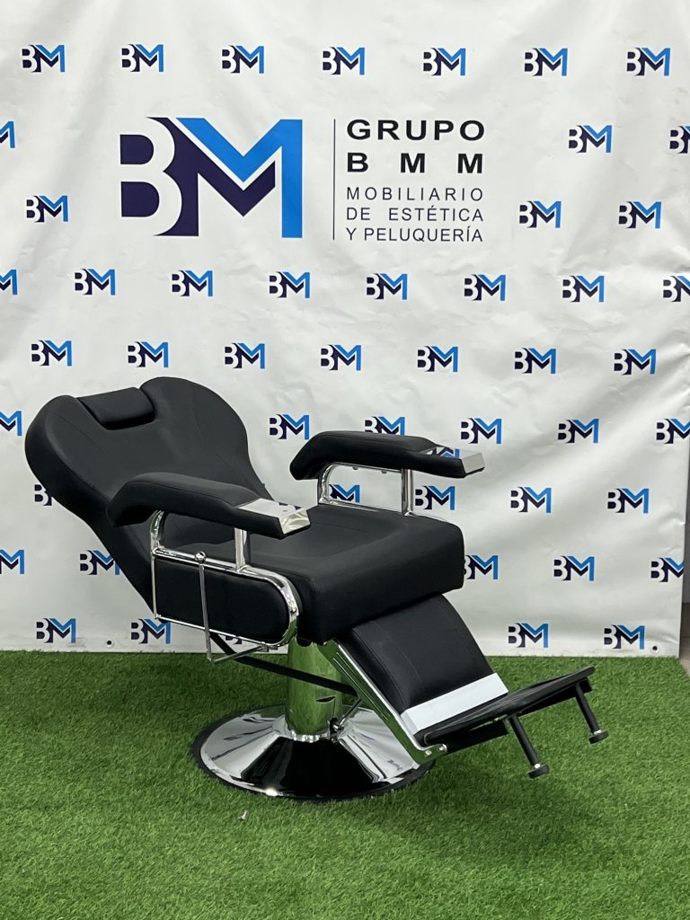 Sillón de barbería clásico negro y plata