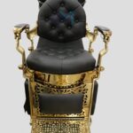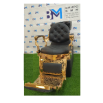 - Estructura exterior en metal cromado en color dorado y polipiel negro.