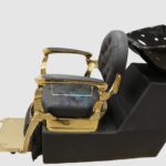 - Apoyabrazos en metal cromado en color dorado y polipiel negro.