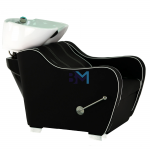 Lavacabezas negro con delicadas líneas blancas y reposapiés manual
