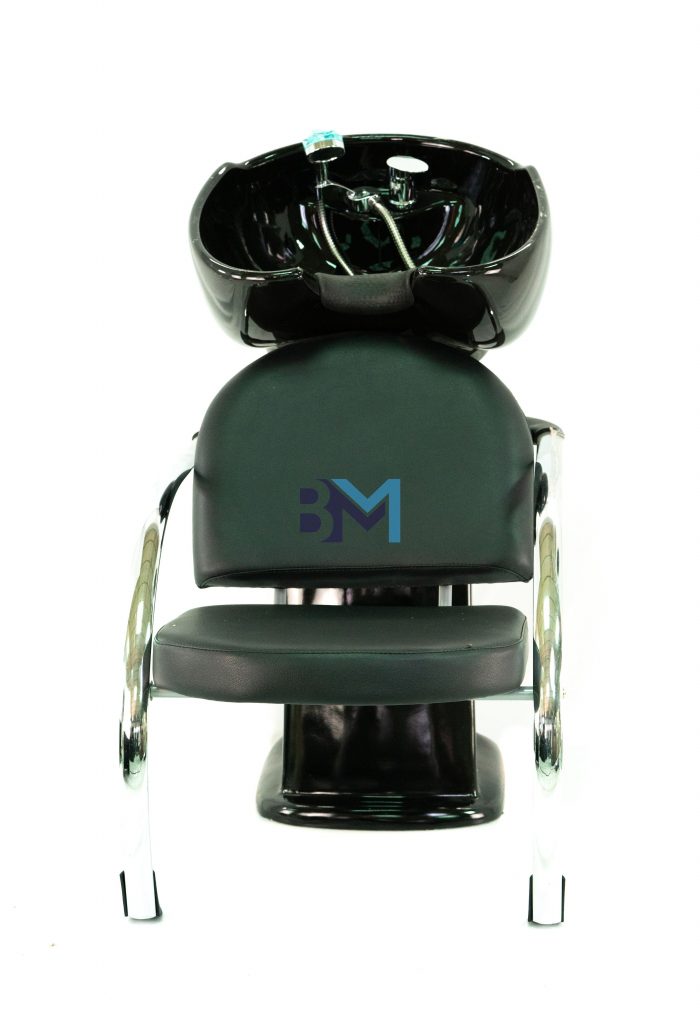 Lavacabezas negro con base de metal cromado