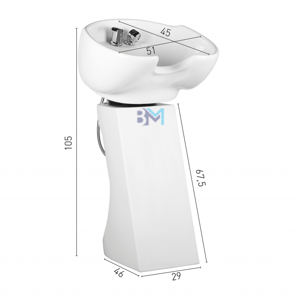 - Pica de cerámica basculante dotado con grifería, ducha, desagüe y tomas de agua caliente y fría.