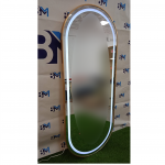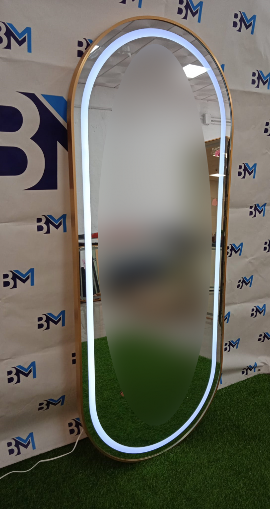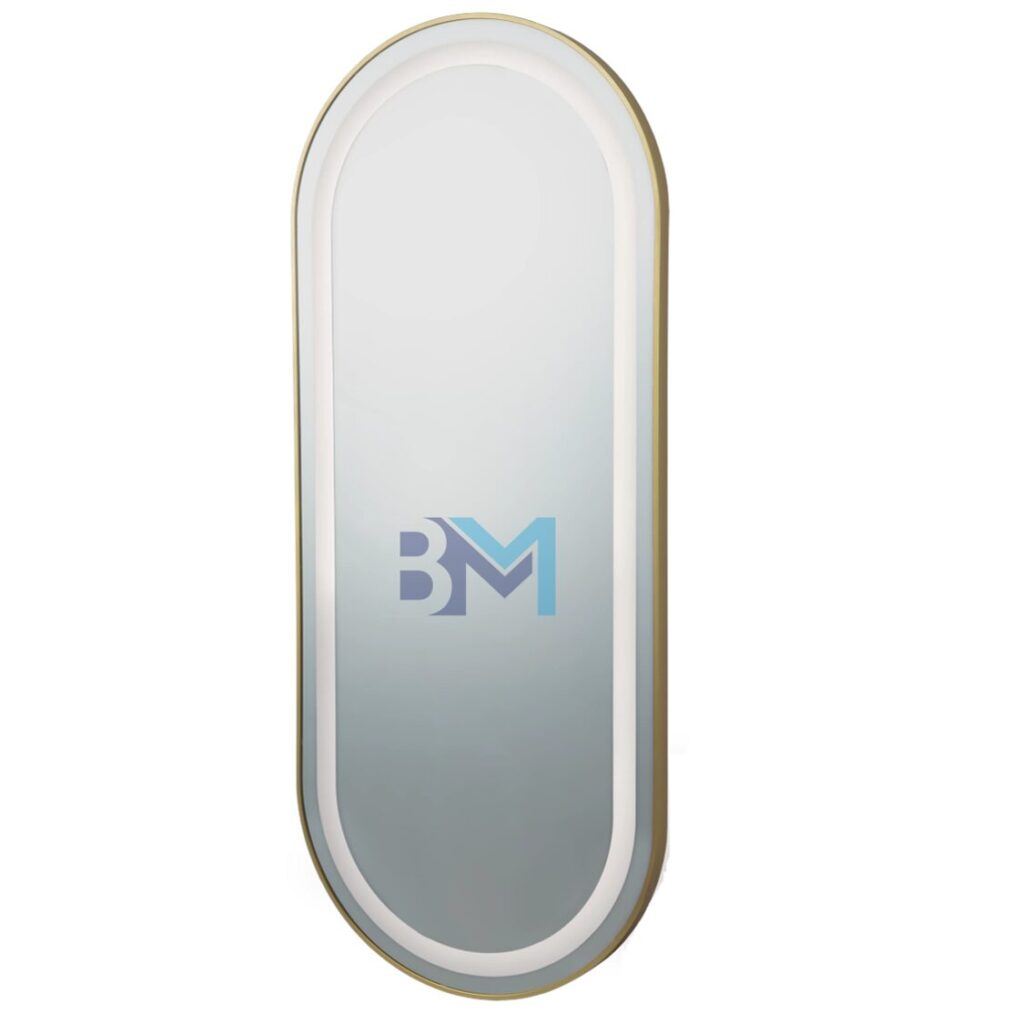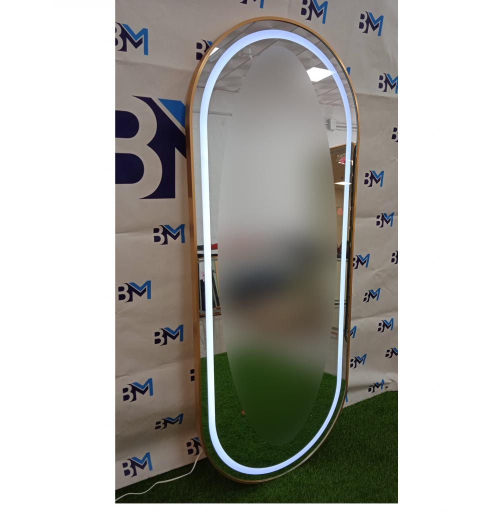 Espejo ovalado con marco dorado mate de aluminio y luz led