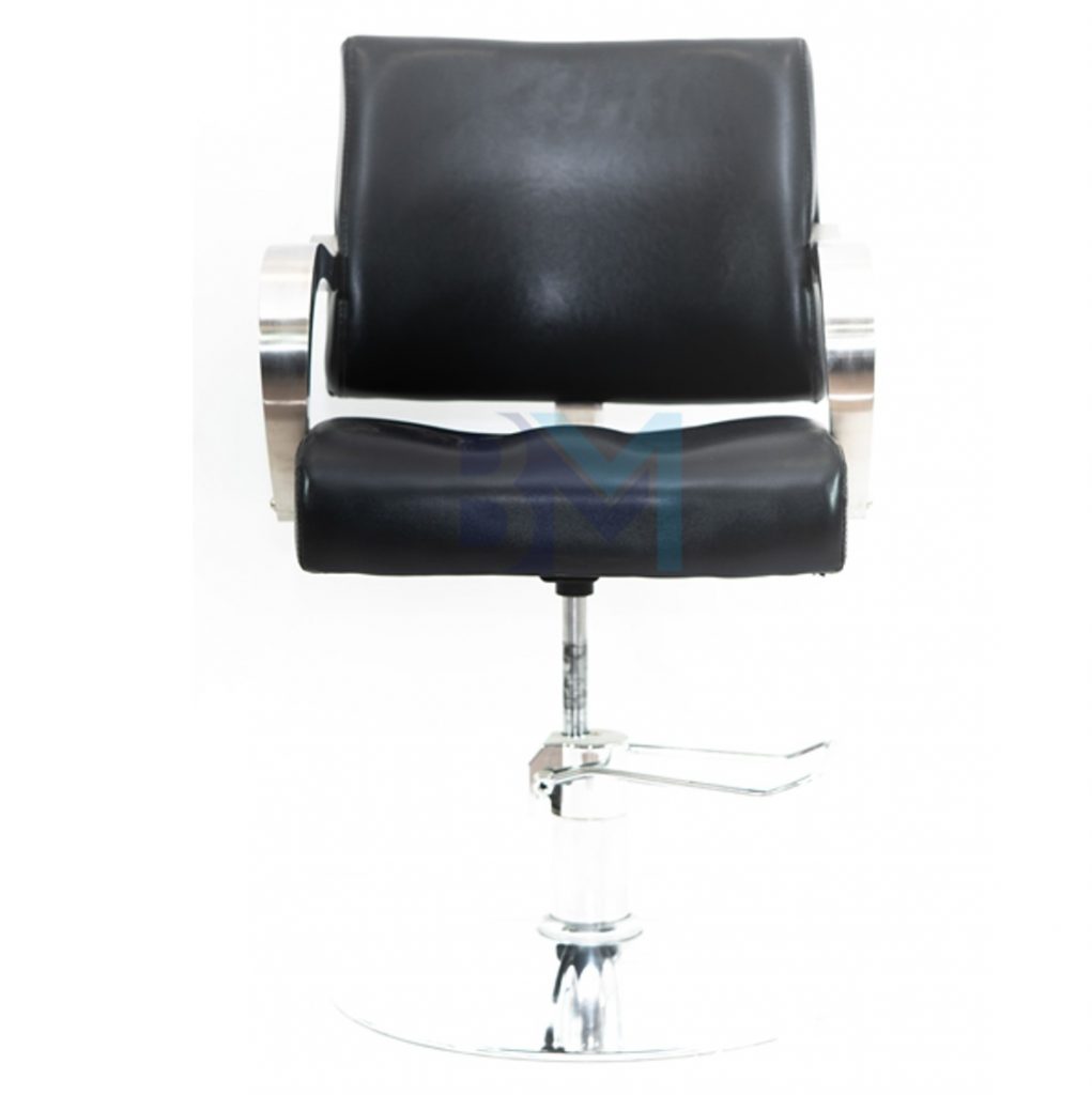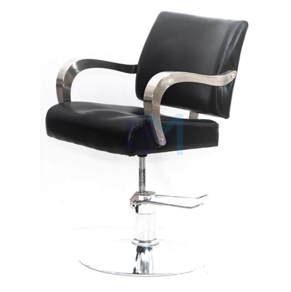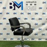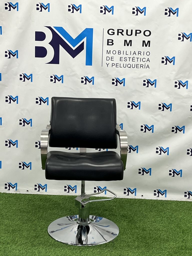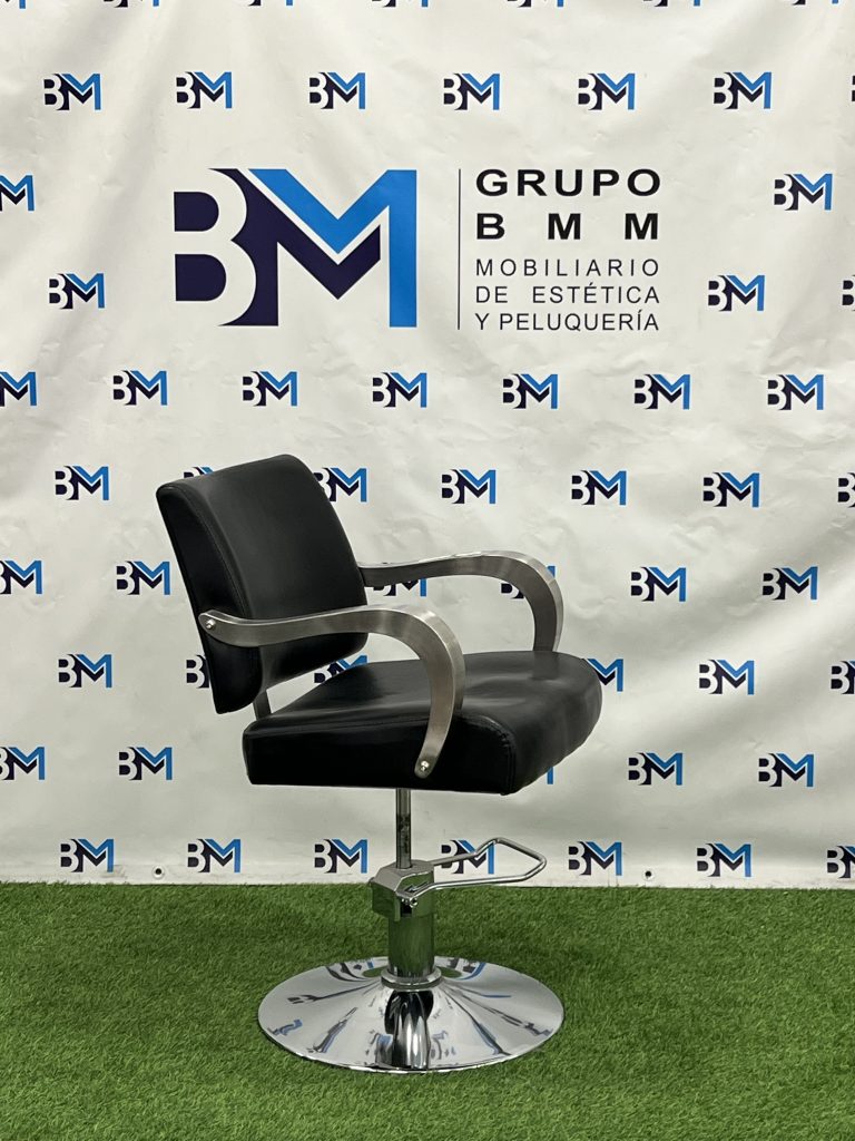 Silla de peluquería en polipiel color negro con apoyabrazos cromados