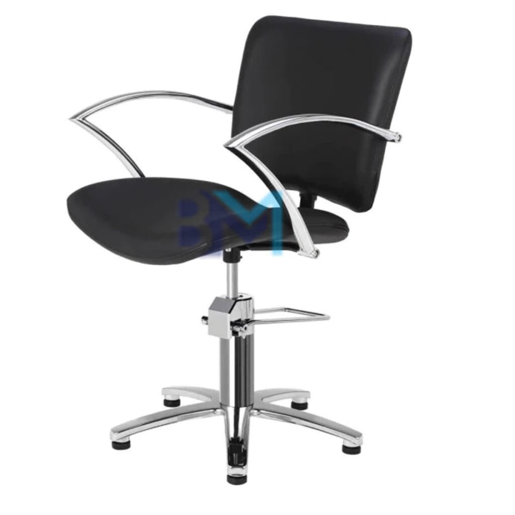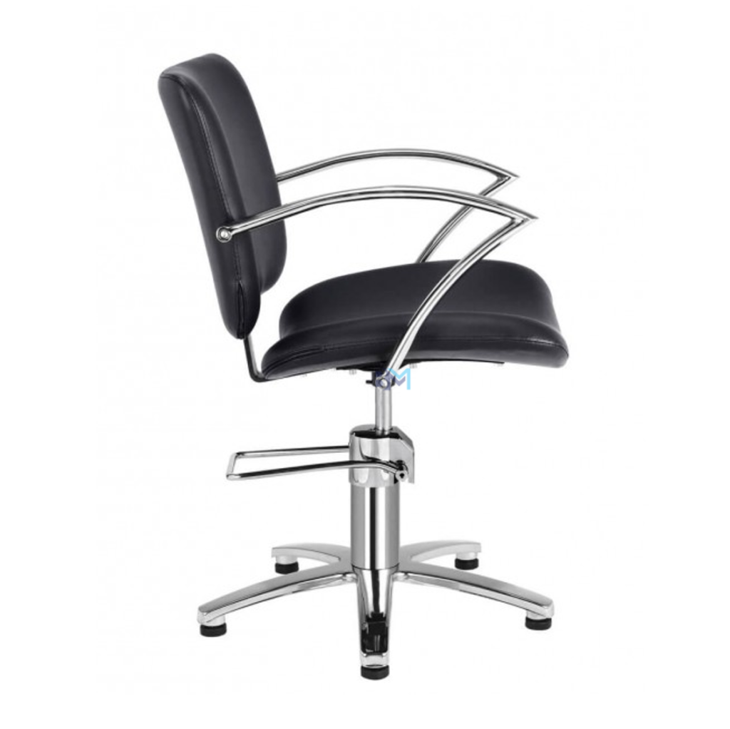 Silla de peluquería en polipiel color negro con apoyabrazos cromados