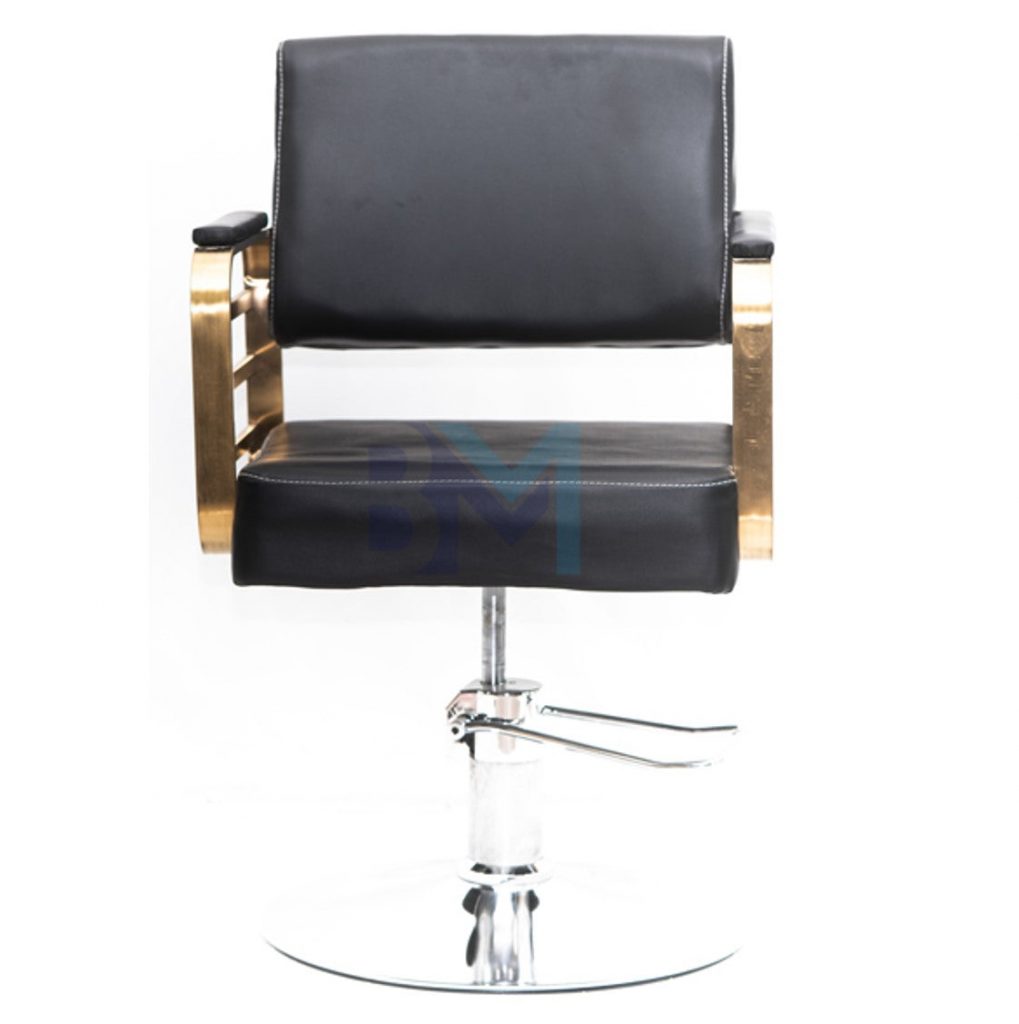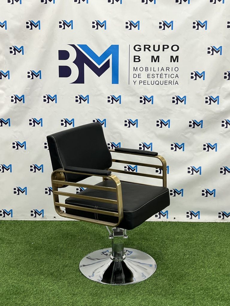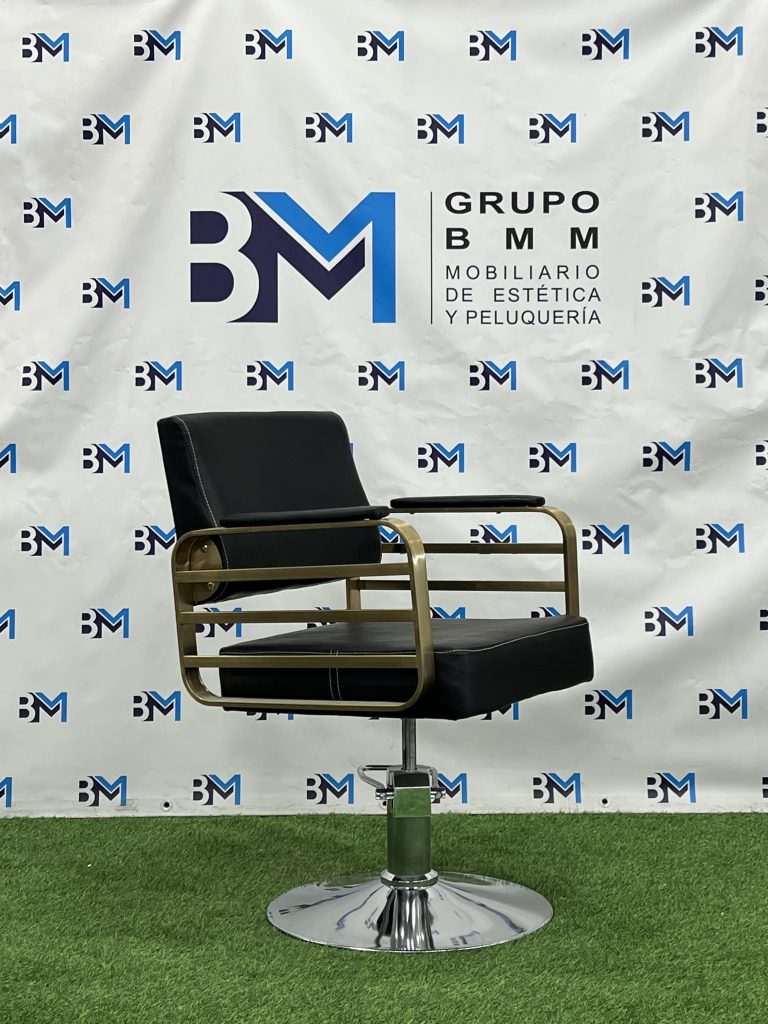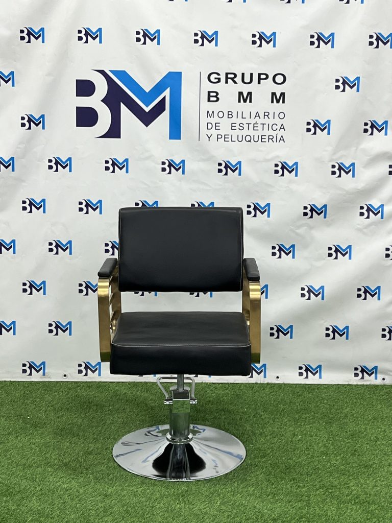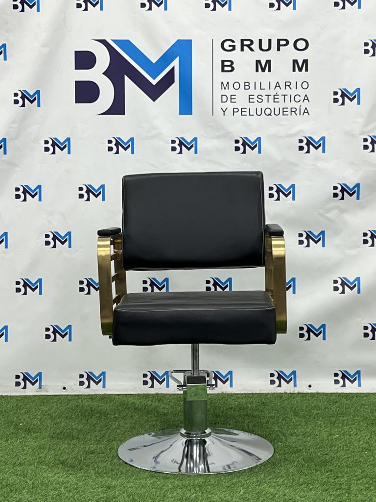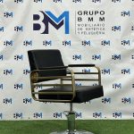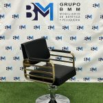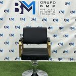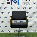 Silla de peluquería en polipiel color negro con apoyabrazos dorados o plateados