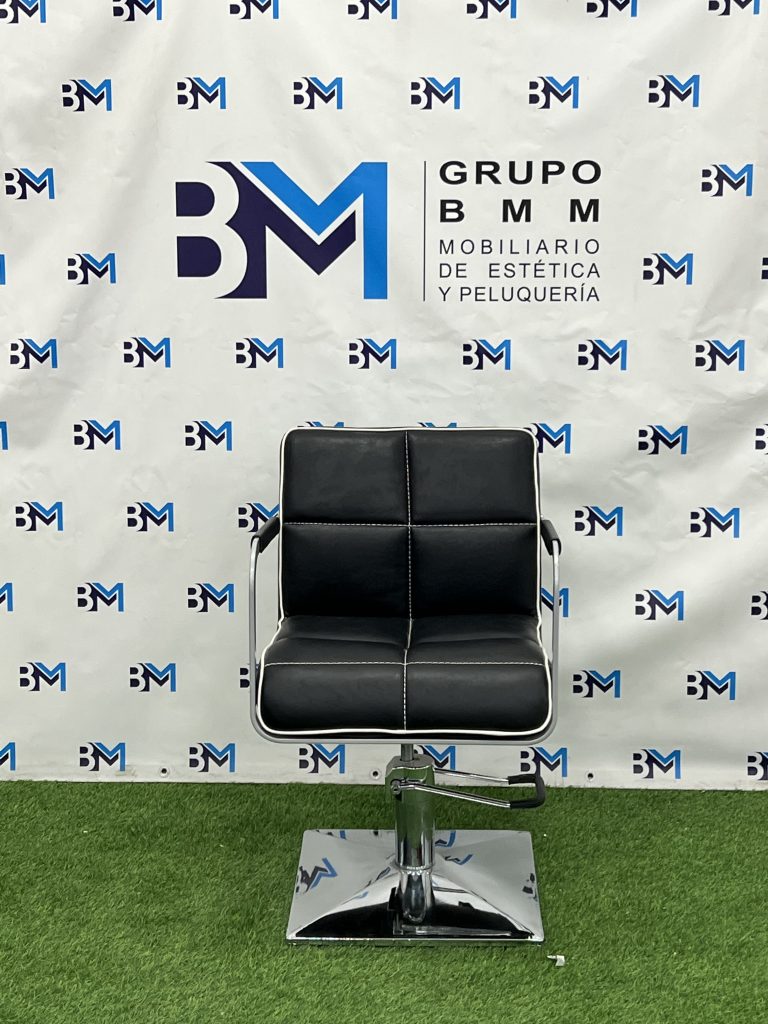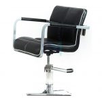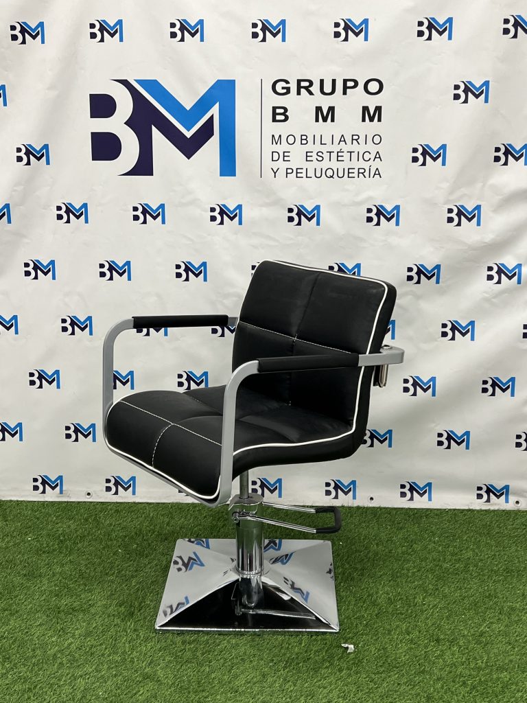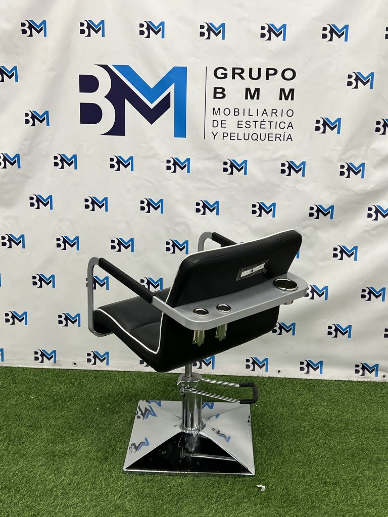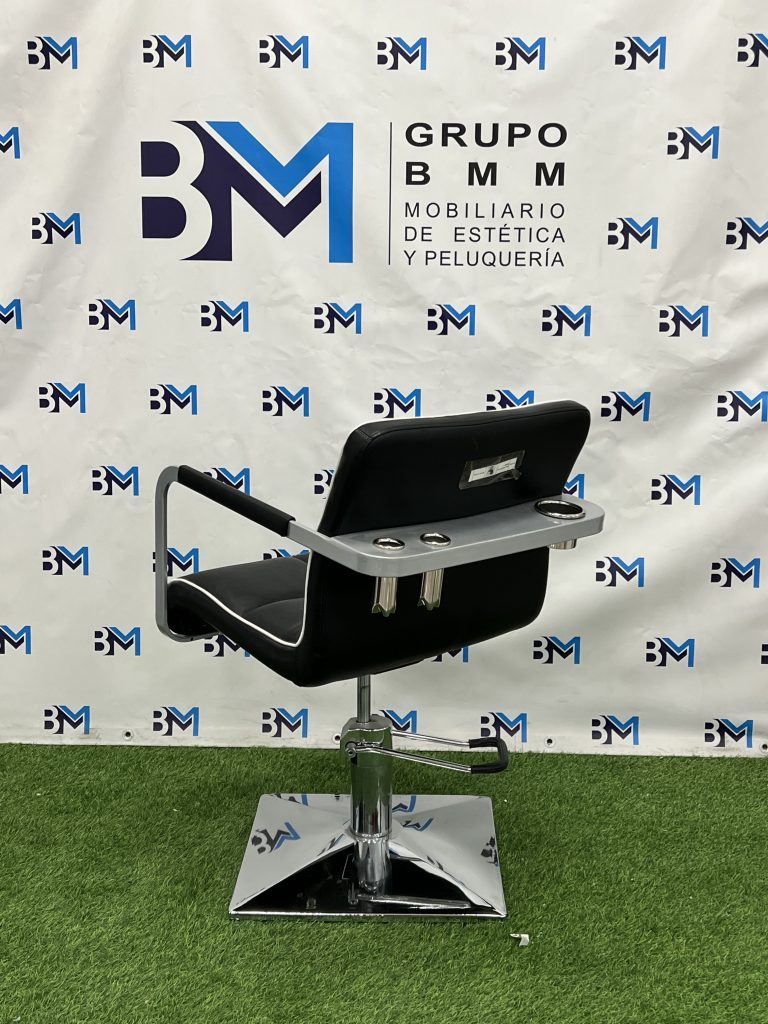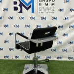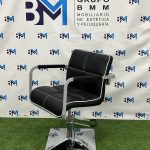 Silla de peluquería en polipiel color negro con apoyabrazos plateados