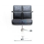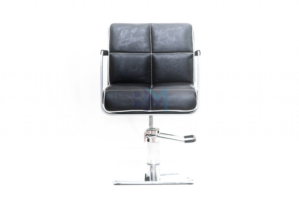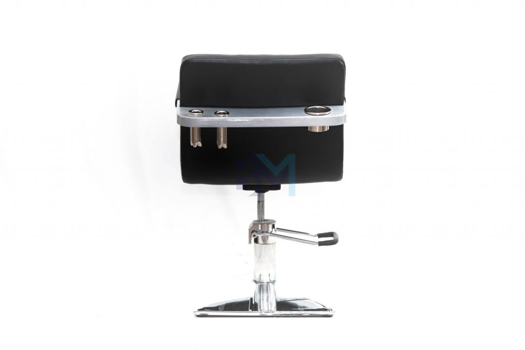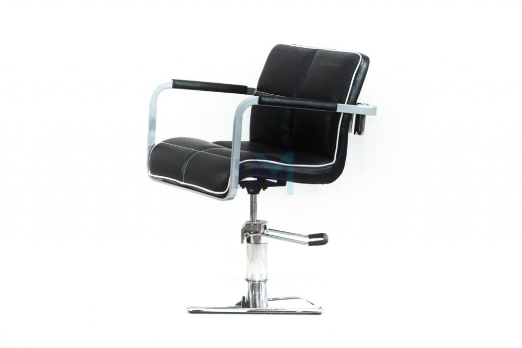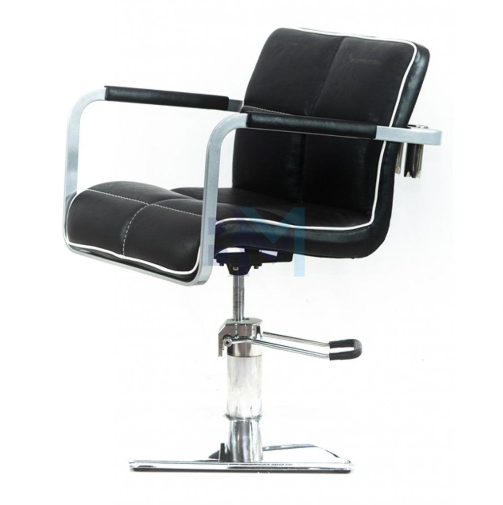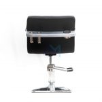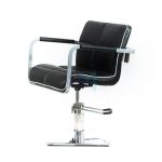 Silla de peluquería en polipiel color negro con apoyabrazos plateados