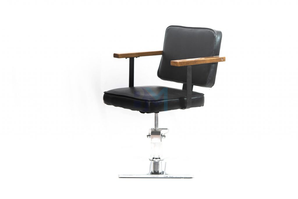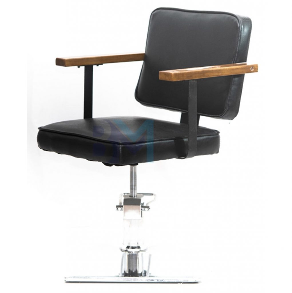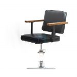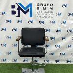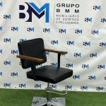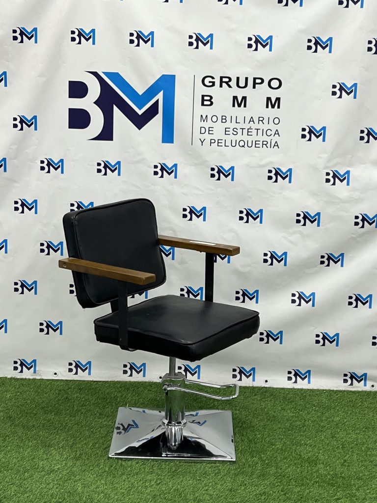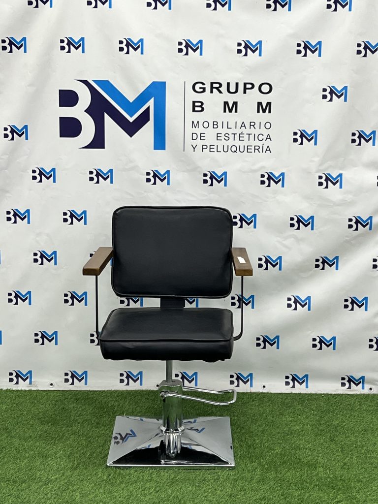 Silla de peluquería en polipiel color negro con apoyabrazos de madera