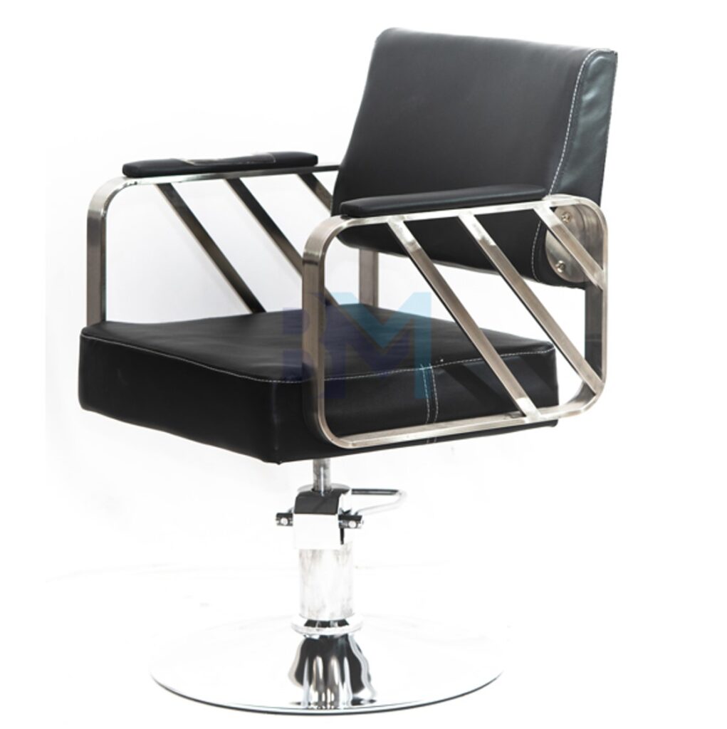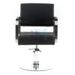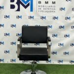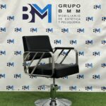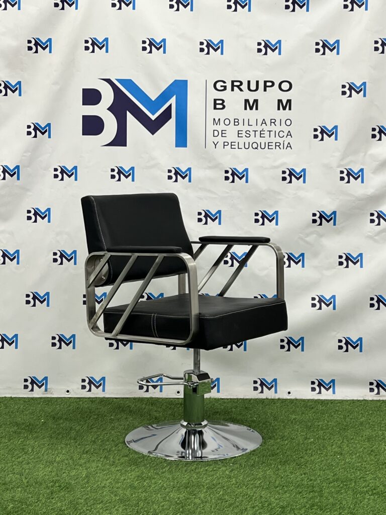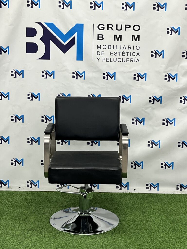 Silla de peluquería en polipiel color negro con apoyabrazos plateados