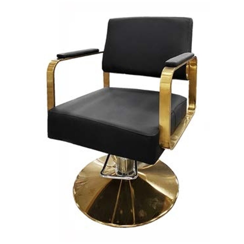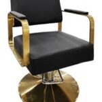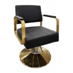 Silla de peluquería en polipiel color negro con apoyabrazos dorados