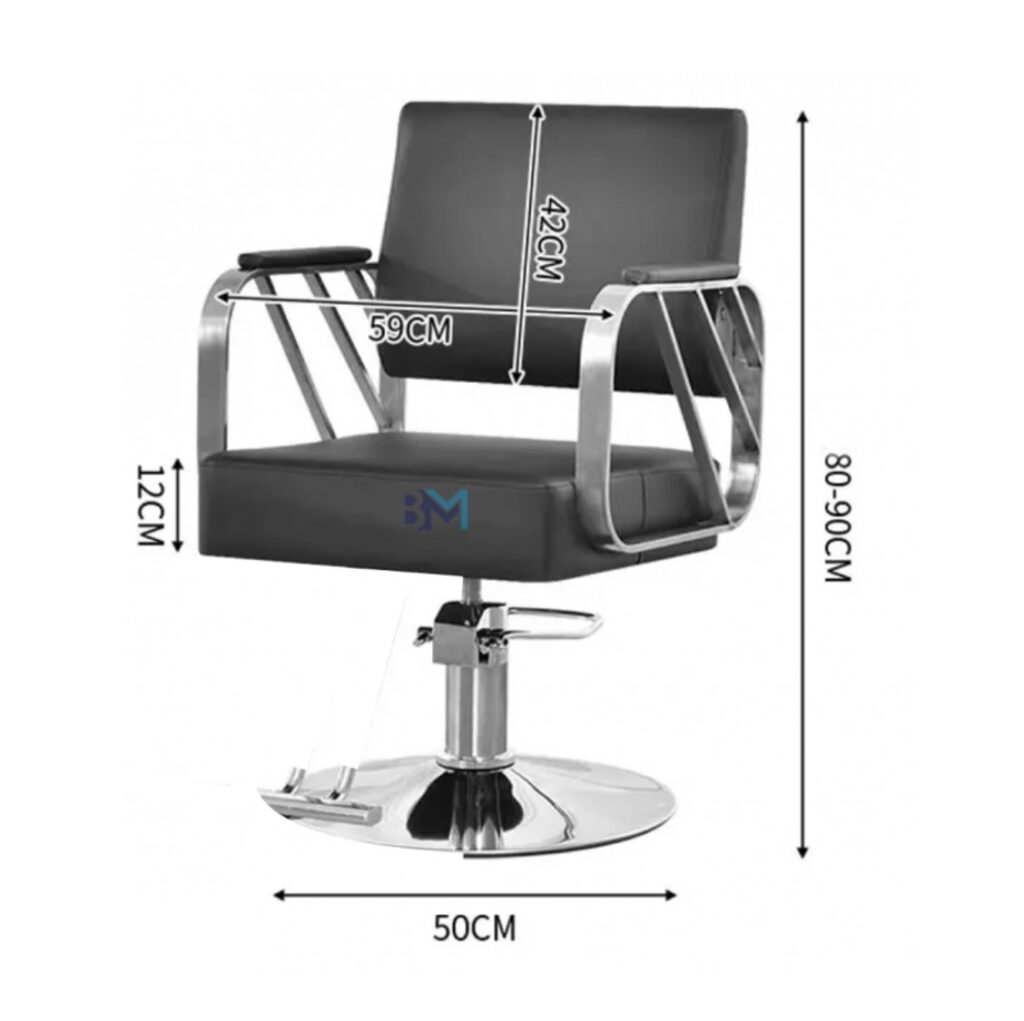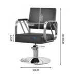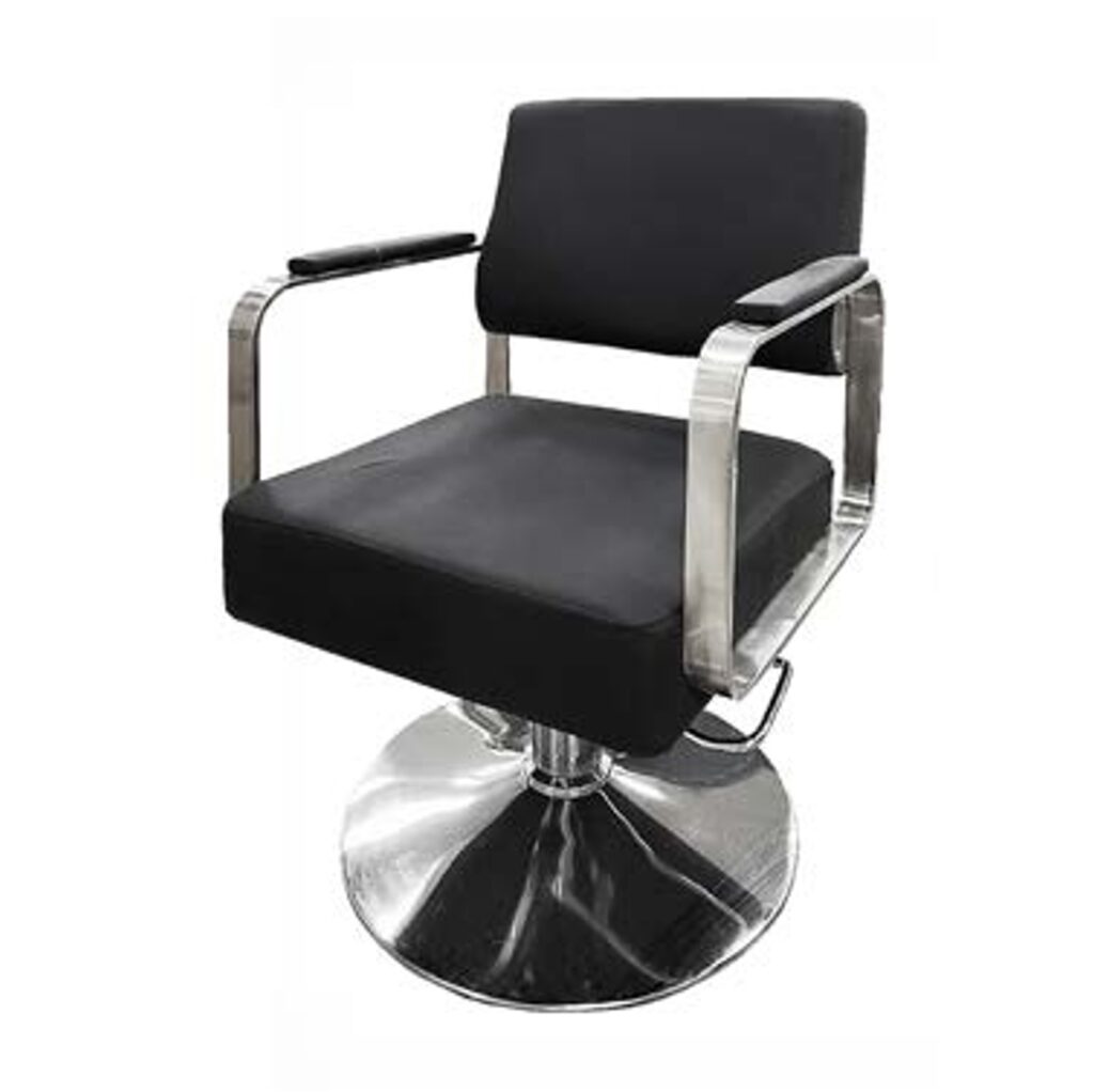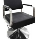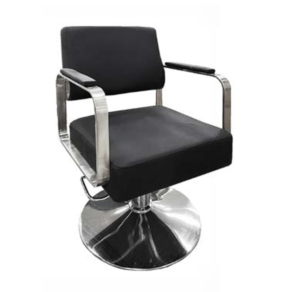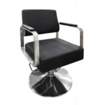 Silla de peluquería en polipiel color negro con apoyabrazos plateados