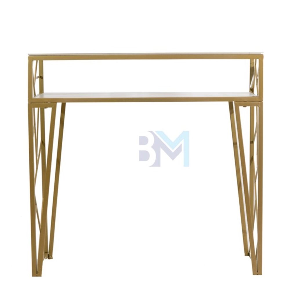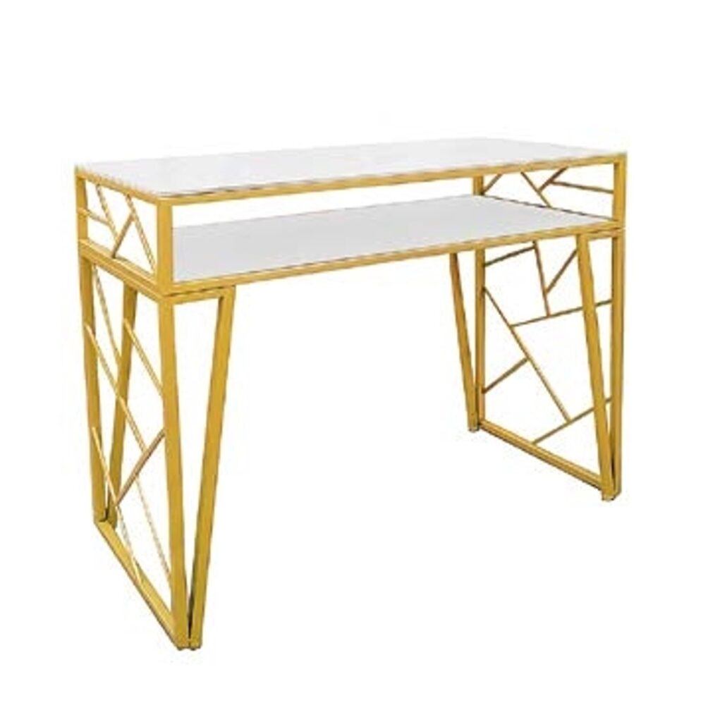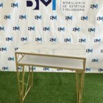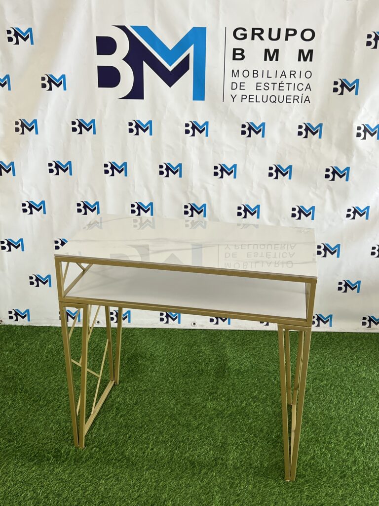 Mesa de manicura individual de metal dorado con tope de porcelana tipo mármol