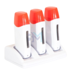 Fundidor calentador de roll on triple para cartuchos universales con tapa de seguridad, de fácil manejo.Cuenta con una ventana lateral transparente para ver el estado del cartucho en el envase sin necesidad de abrirlo.Su tamaño lo hace fácil de transportar, no es necesario usar espátula, puede encerar la piel directamente. Es ideal para los tratamientos en los centros de belleza, estética, spa, e incluso para uso personal.