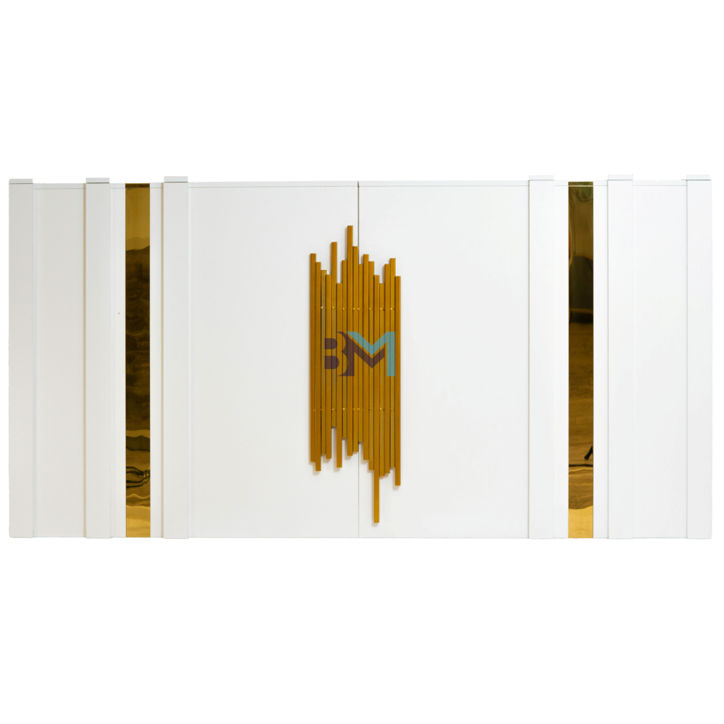 Mostrador de recepción blanco con dorado