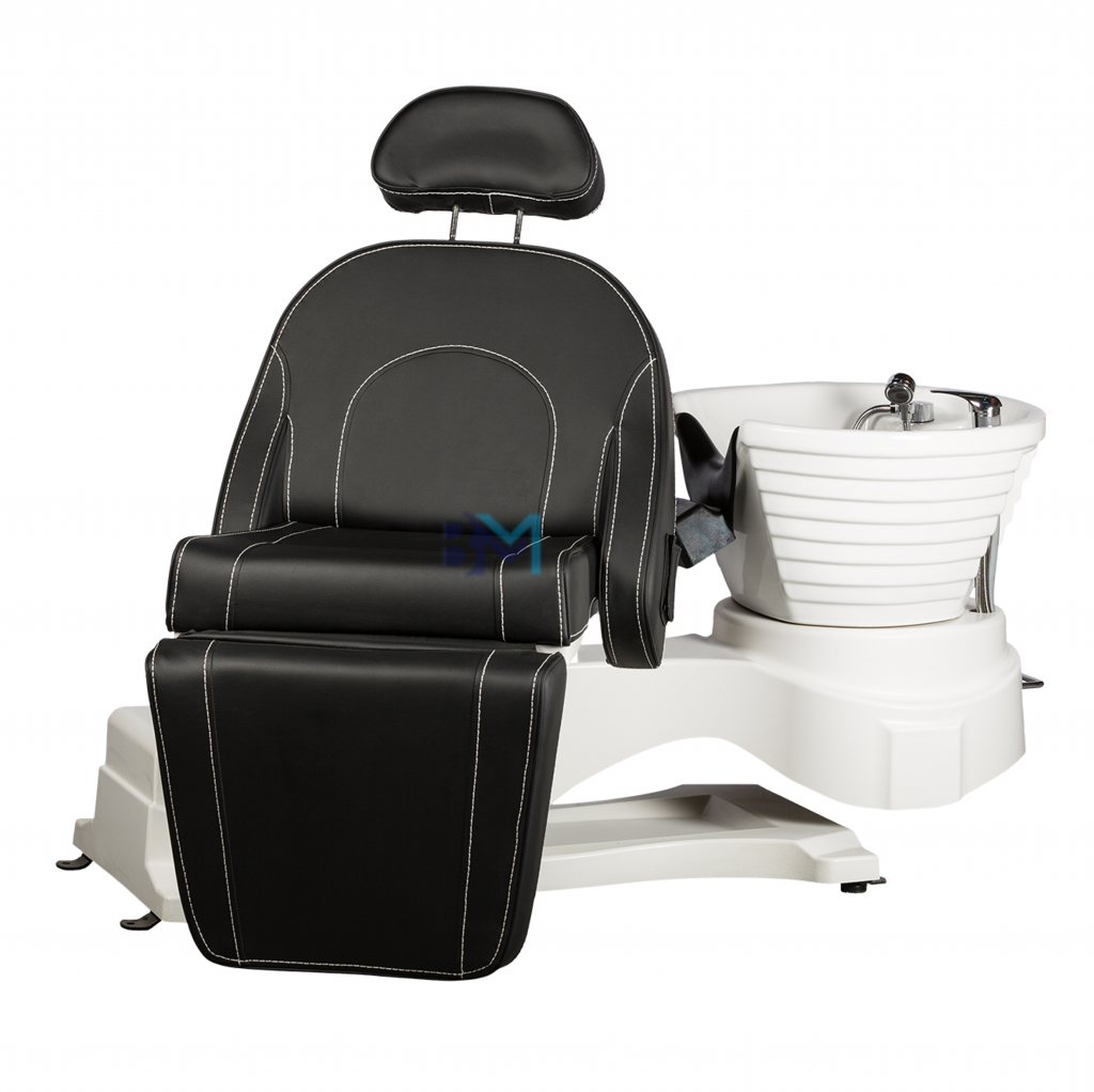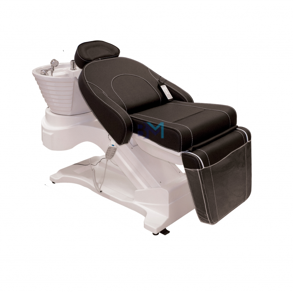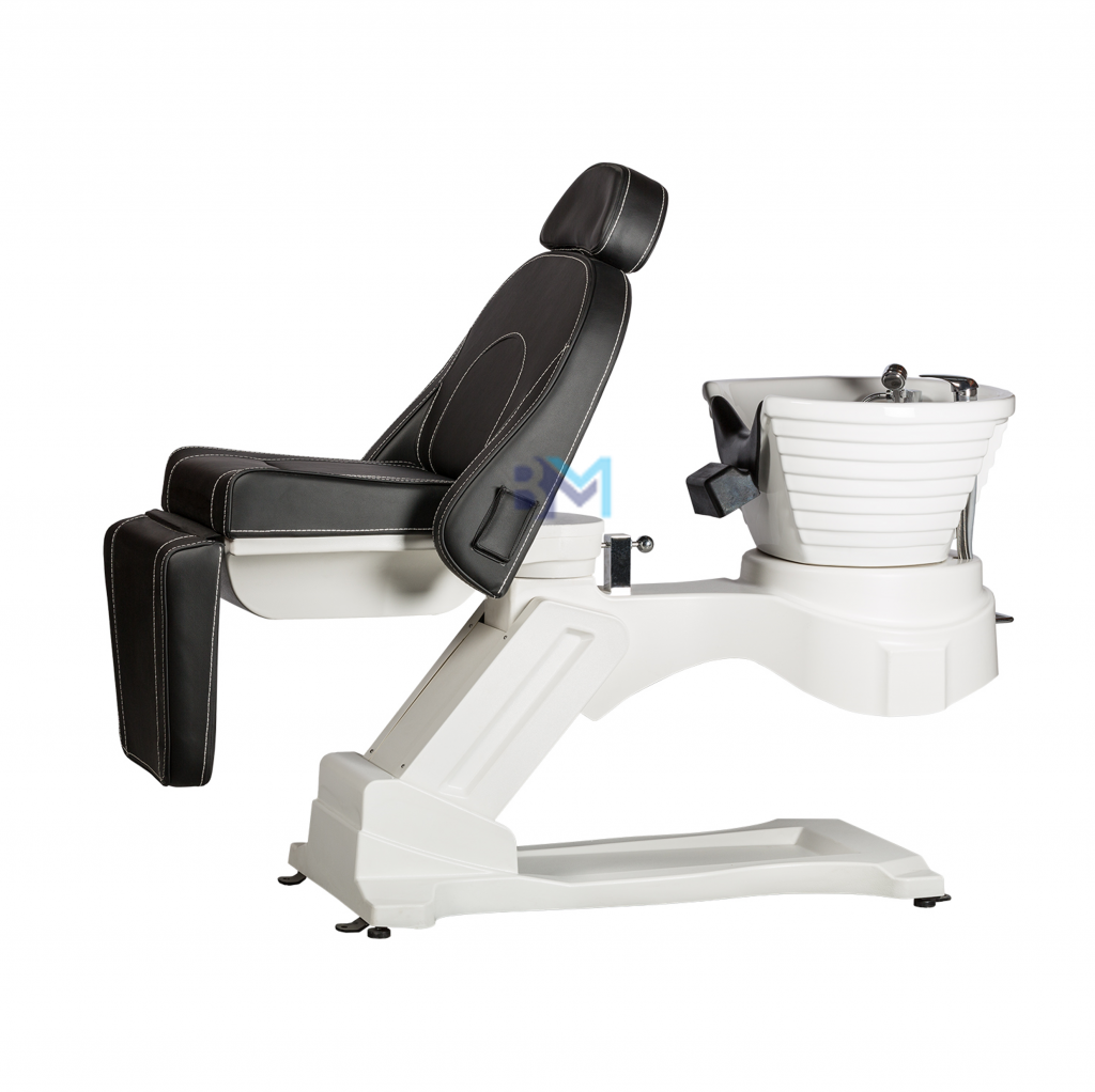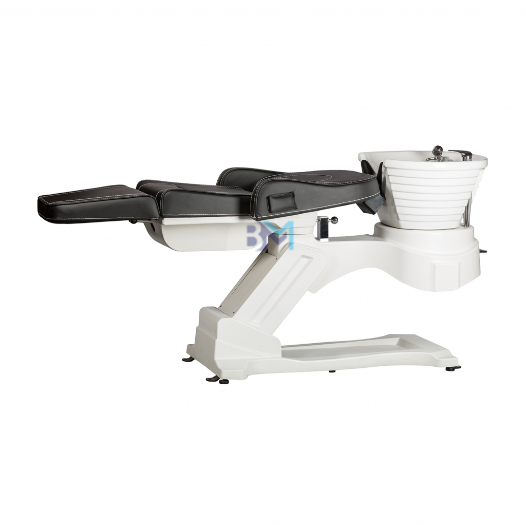 Camilla - lavacabezas eléctrico en color negro y blanco estilo camilla de tres cuerpos con masaje, altura, respaldo y reposapiés ajustable