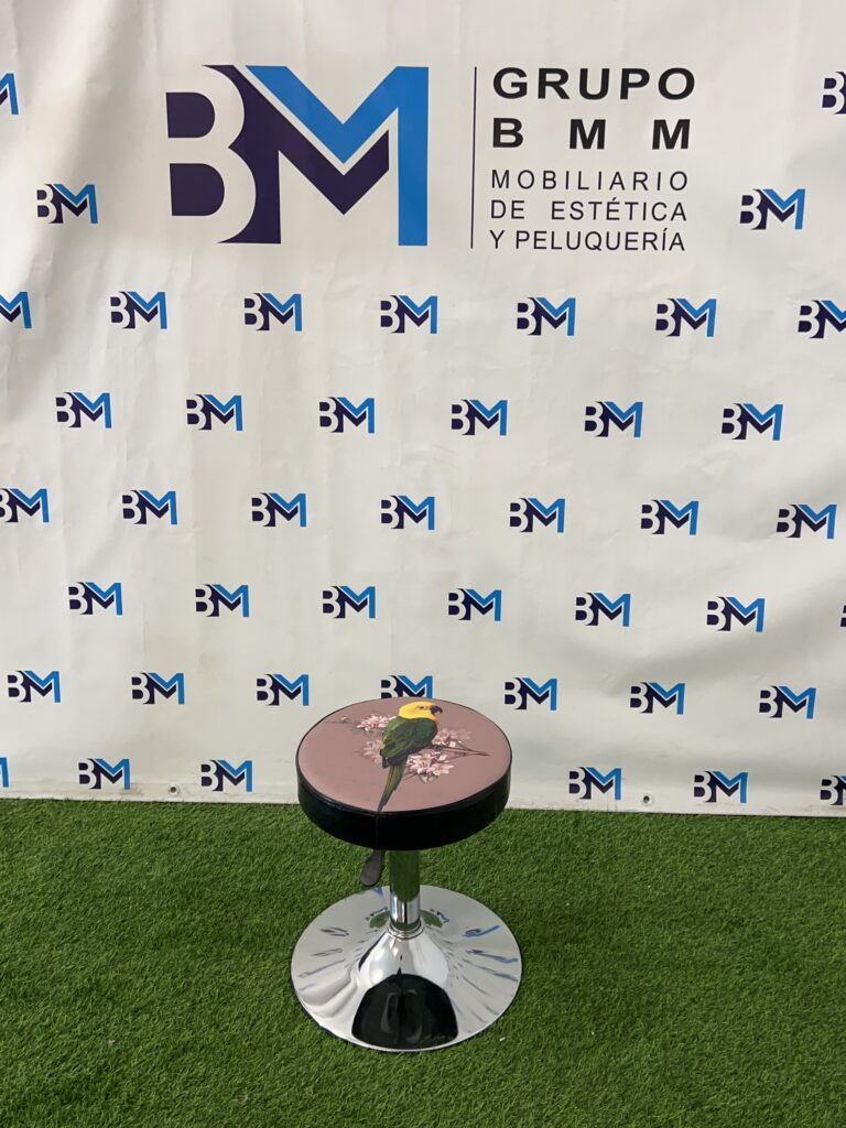 Taburete sin respaldo en polipiel estampado con figuras de loro