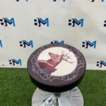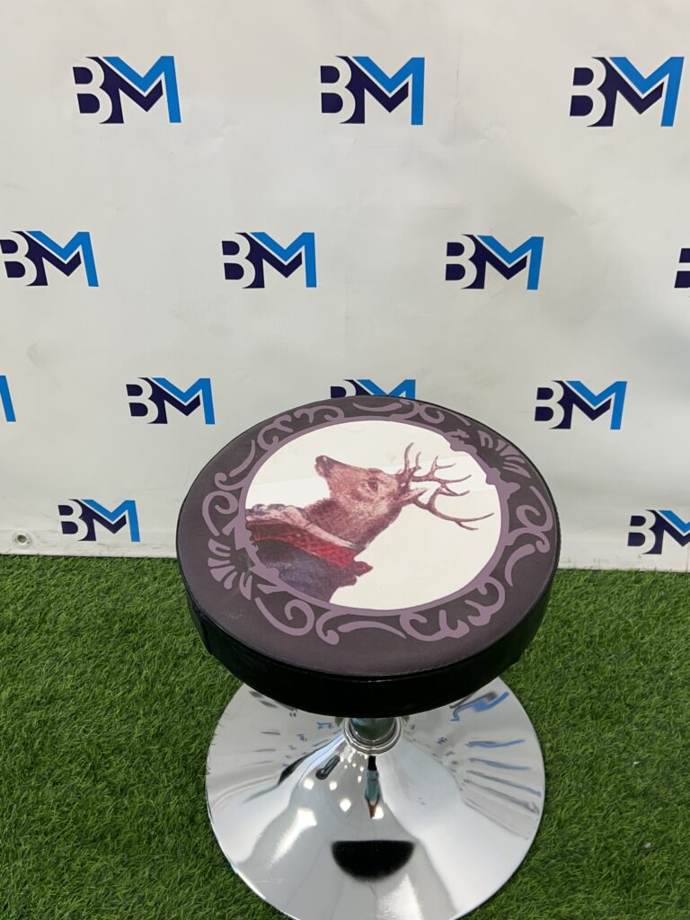 Taburete sin respaldo en polipiel estampado con figuras de siervo