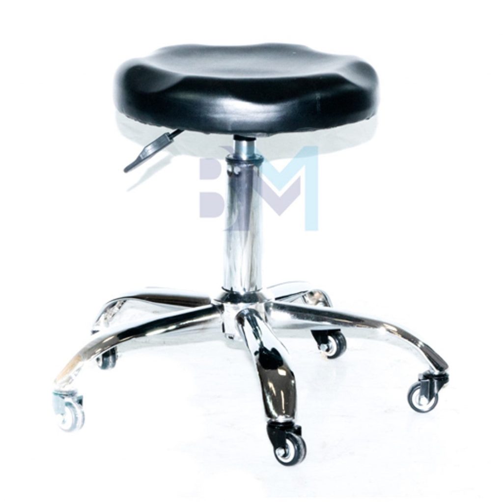 - Base de acero cromado de gran estabilidad y sistema hidráulico para regulación de altura mediante palanca