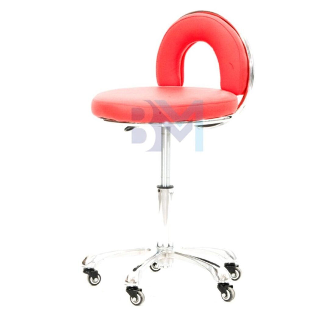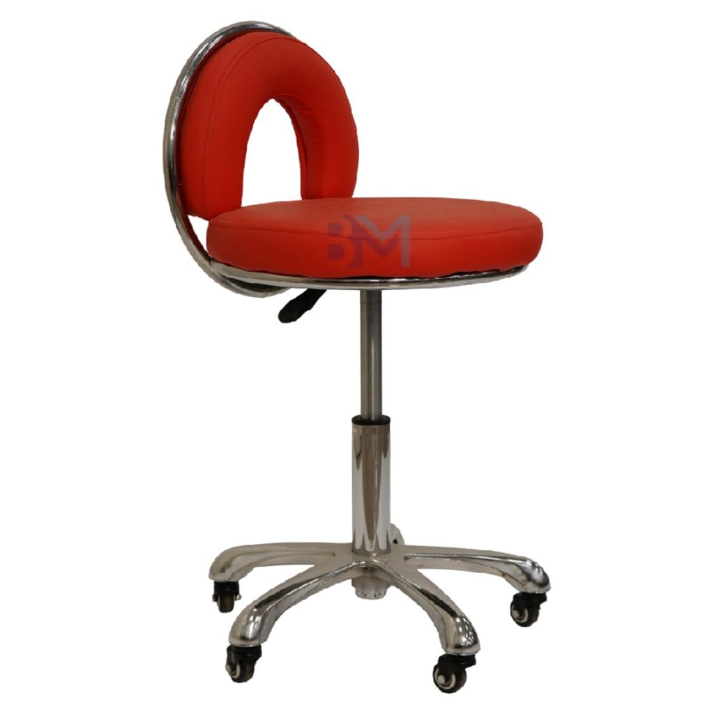 - Base de acero cromado de gran estabilidad y sistema hidráulico para regulación de altura mediante palanca.