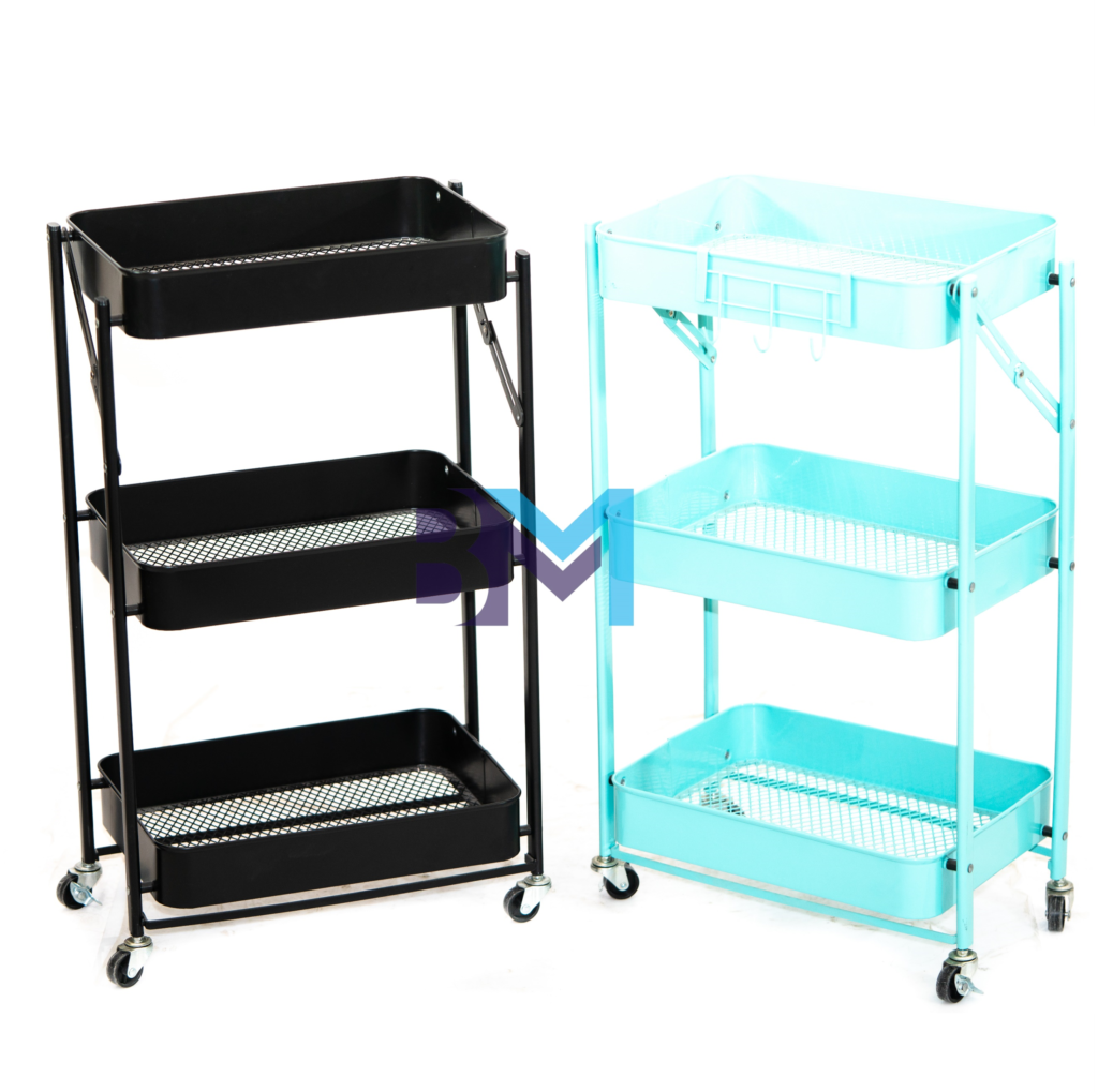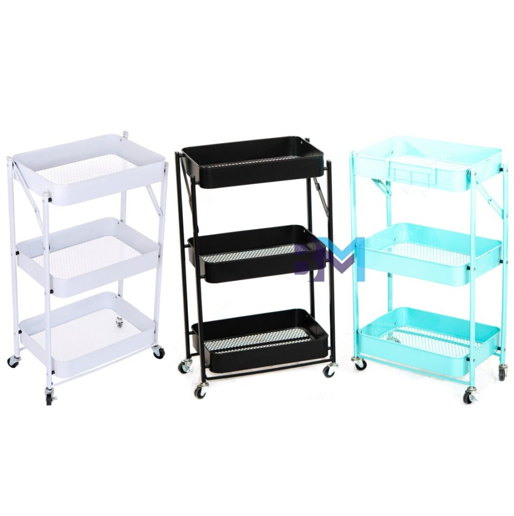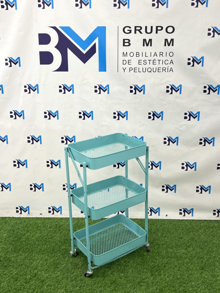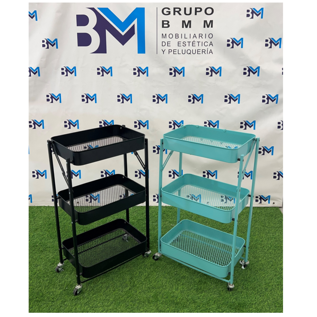 Carrito auxiliar de metal blanco, negro o verde con tres estantes