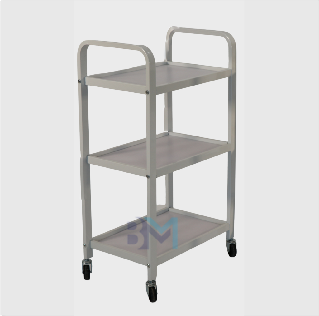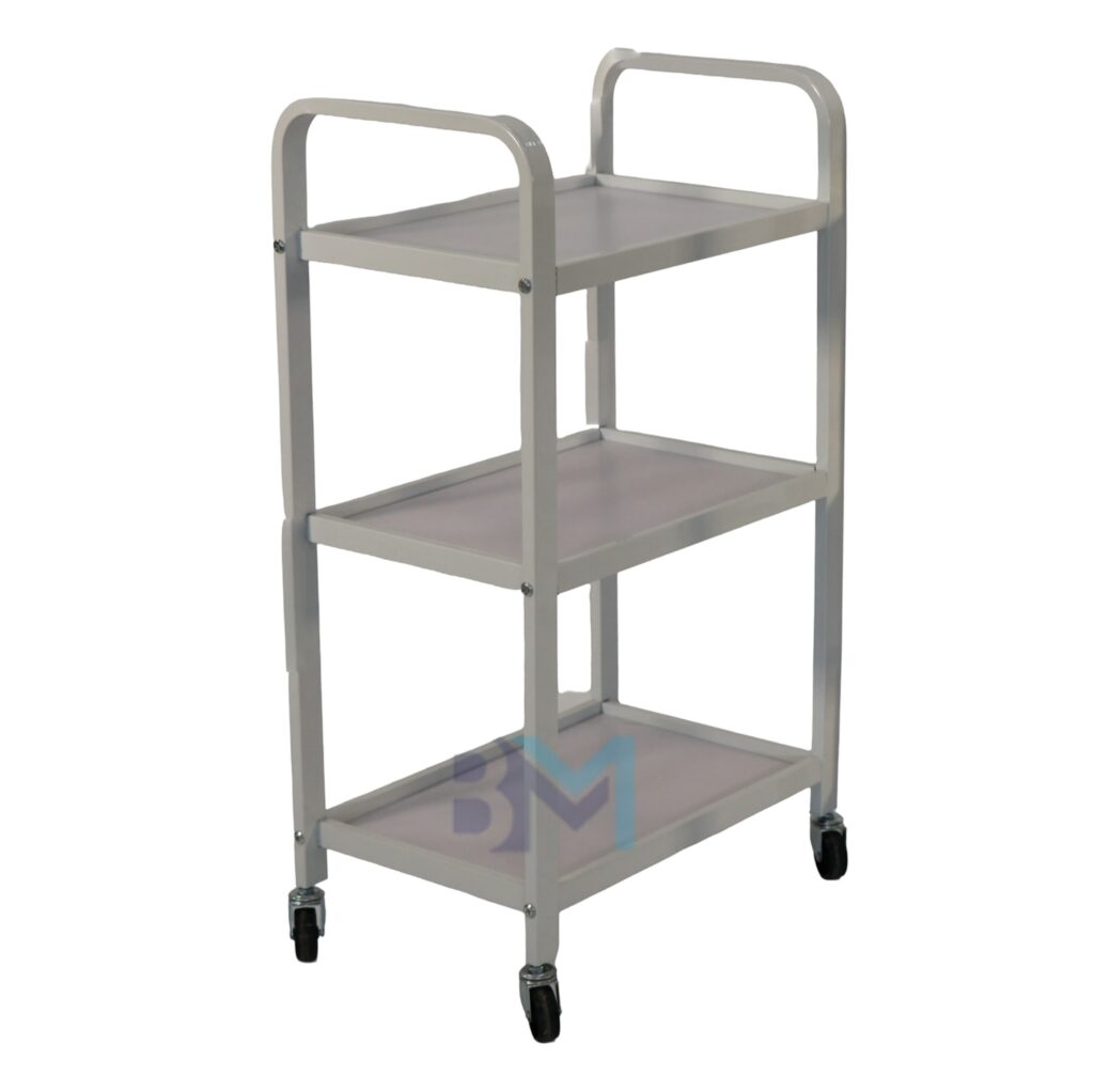 Carrito auxiliar blanco de madera y metal con tres estantes