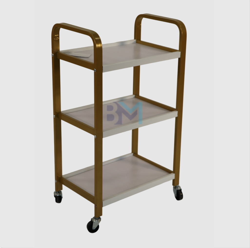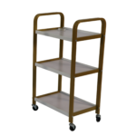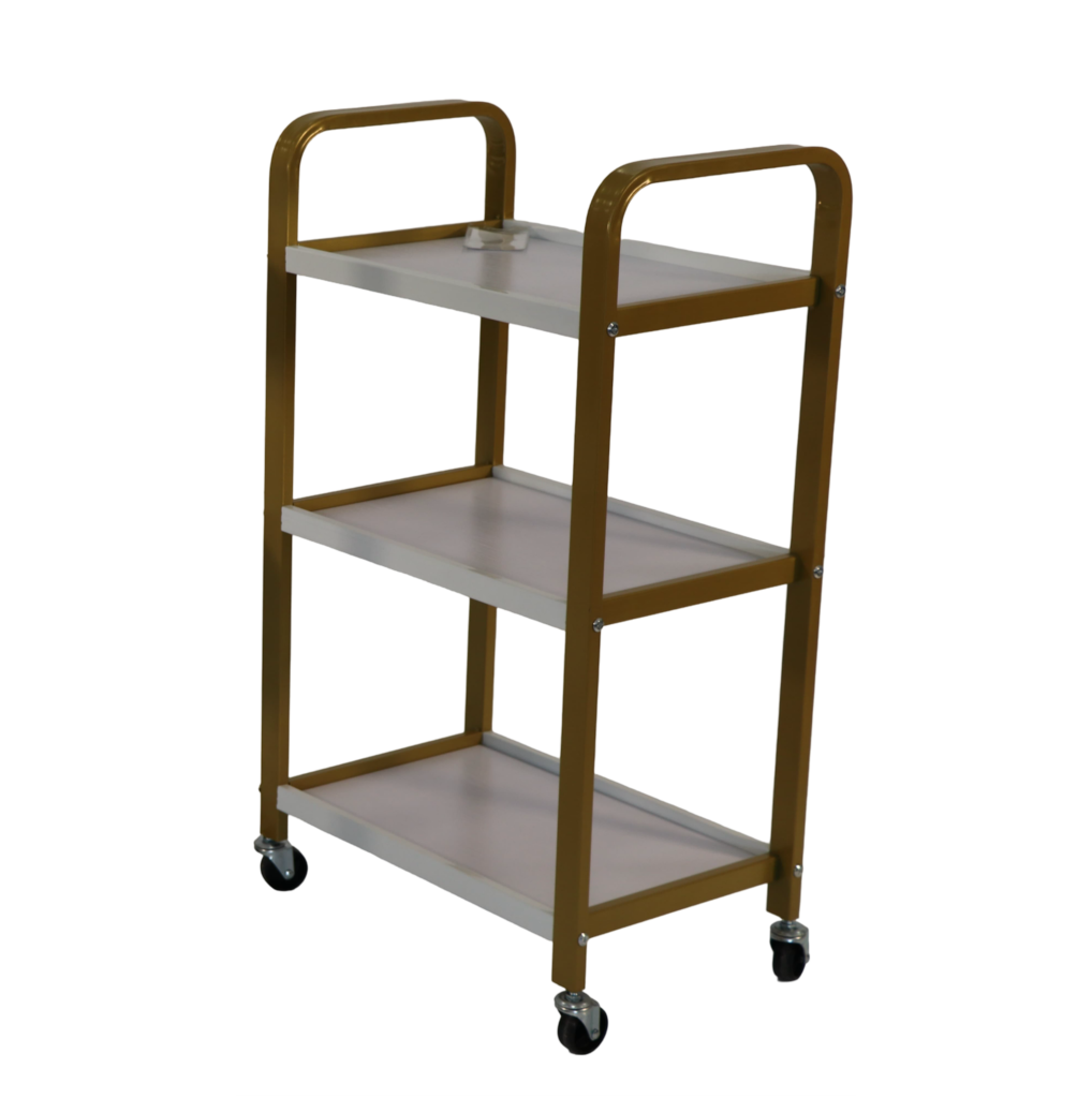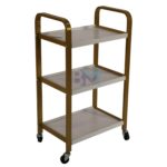 Carrito auxiliar blanco y dorado de madera y metal con tres estantes