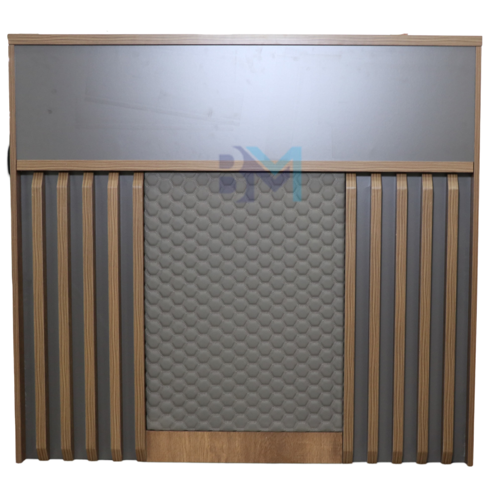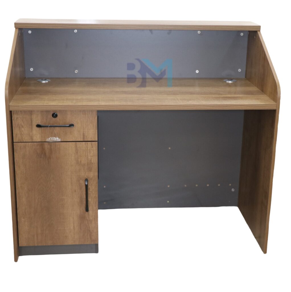 Mostrador de recepción marrón con gris