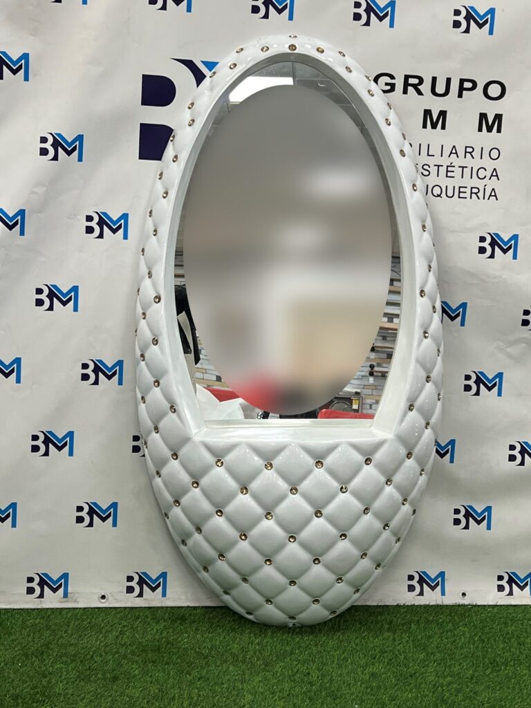 Espejo tocador blanco y detalles de brillo con diseño forma ovalada