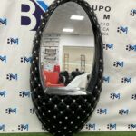 Espejo tocador negro y detalles de brillo con diseño forma ovalada