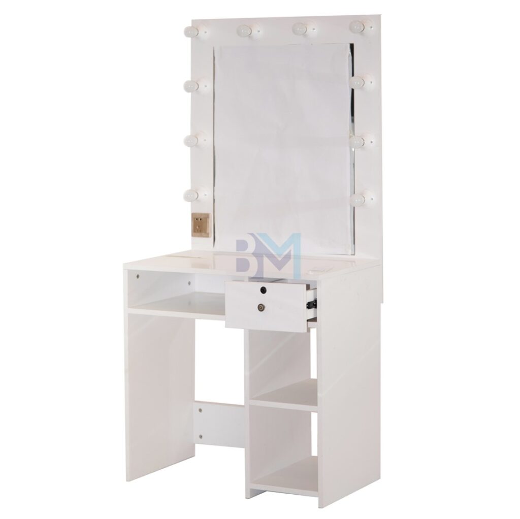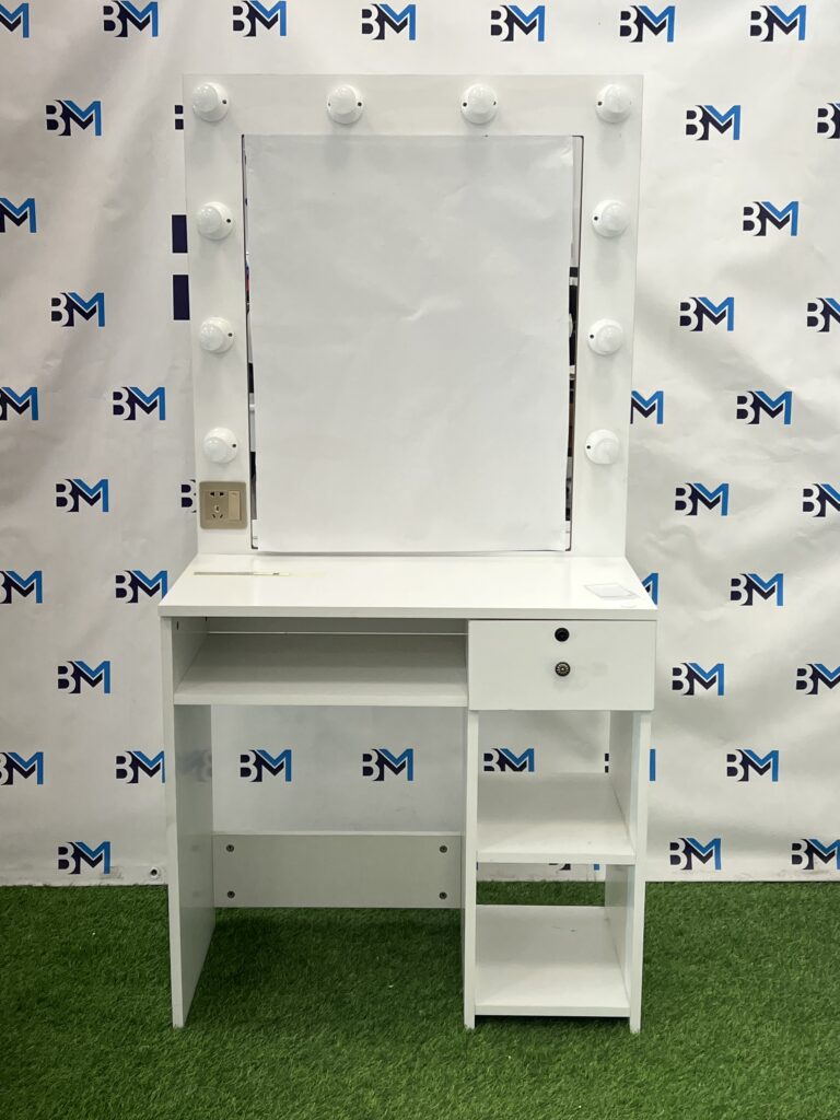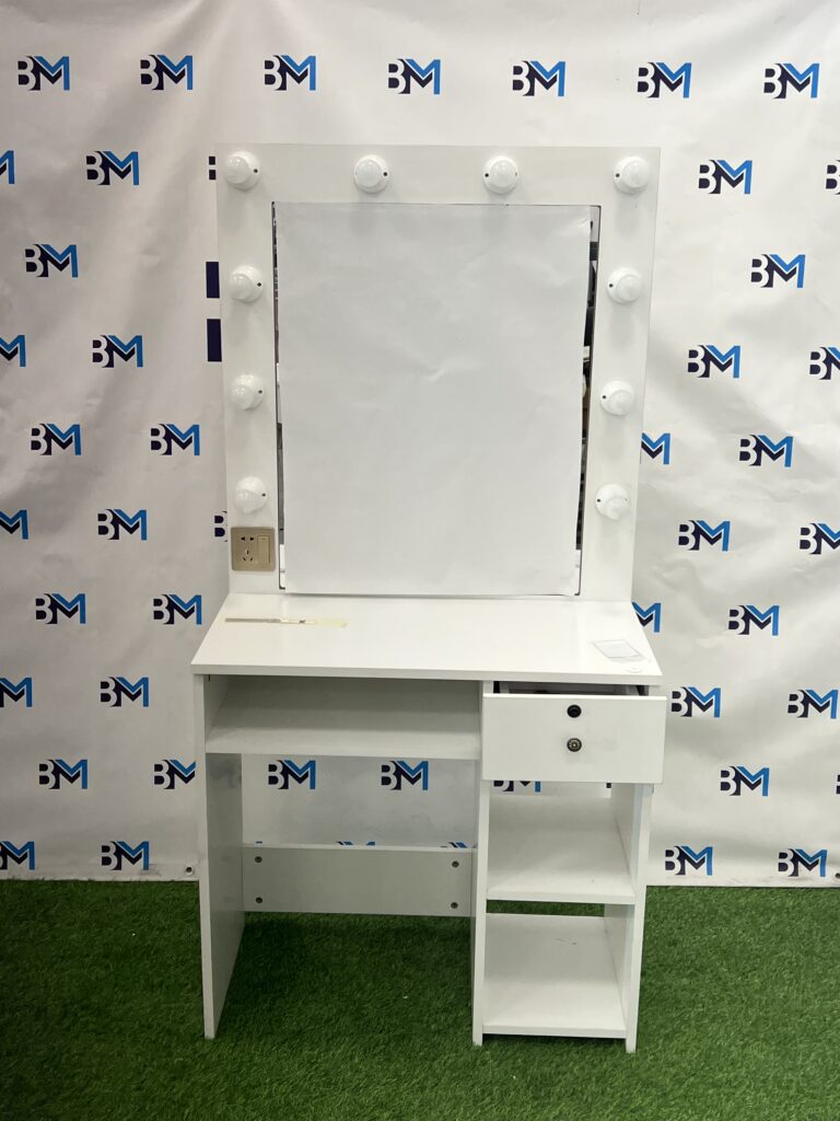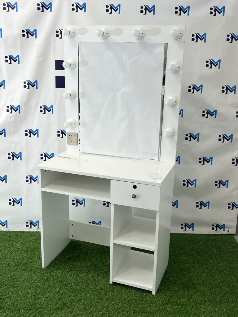 - Espejo tocador vintage en madera lacada blanca o negra.