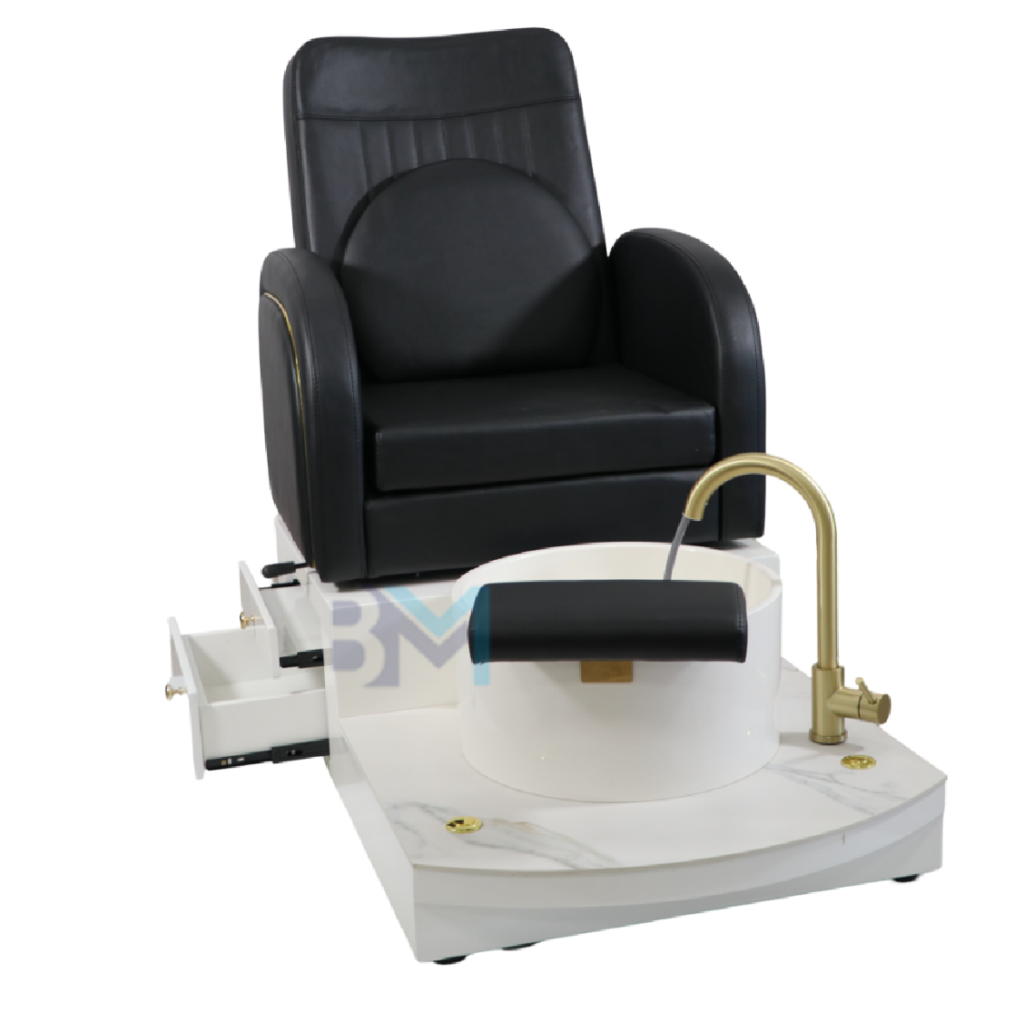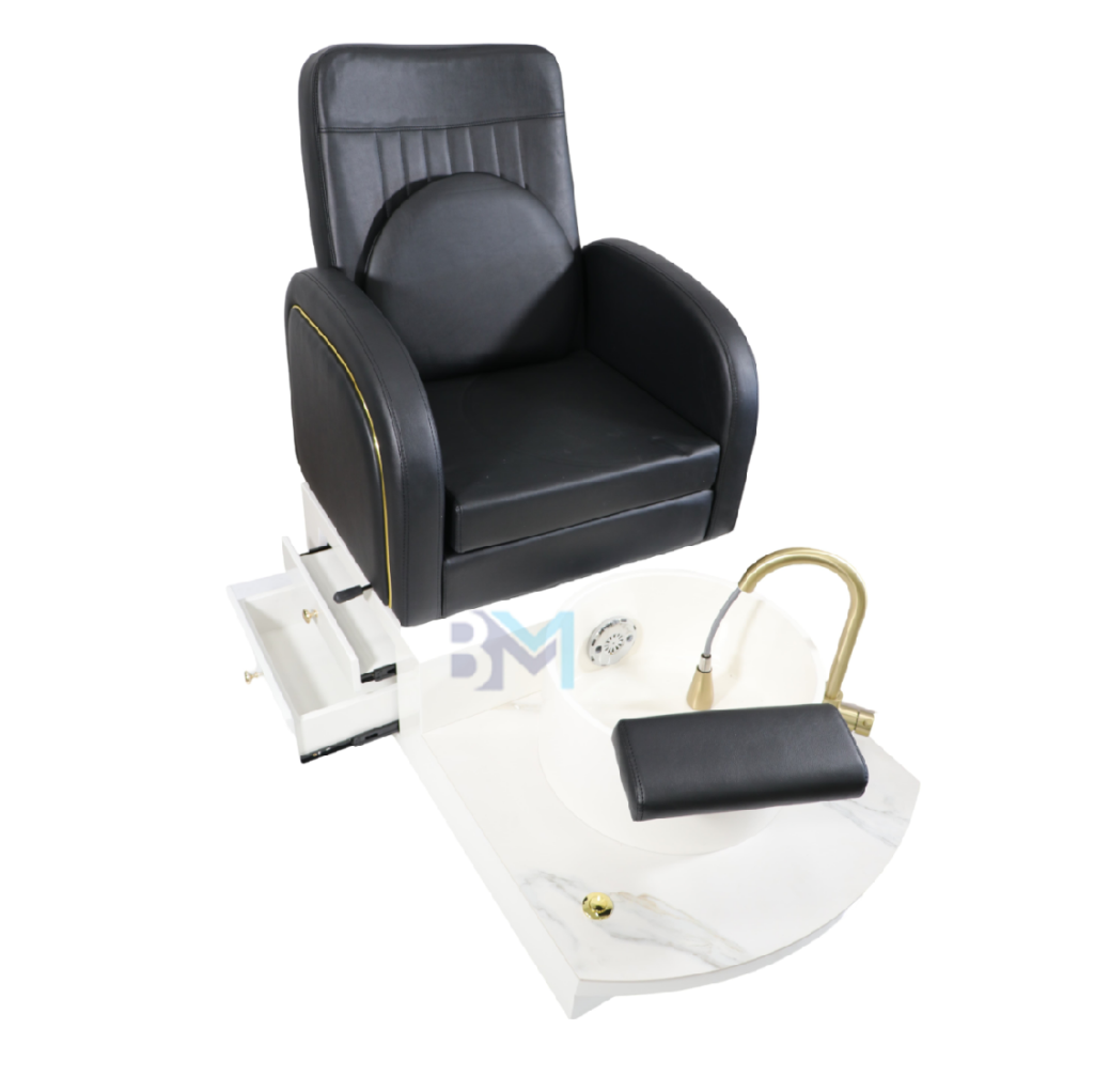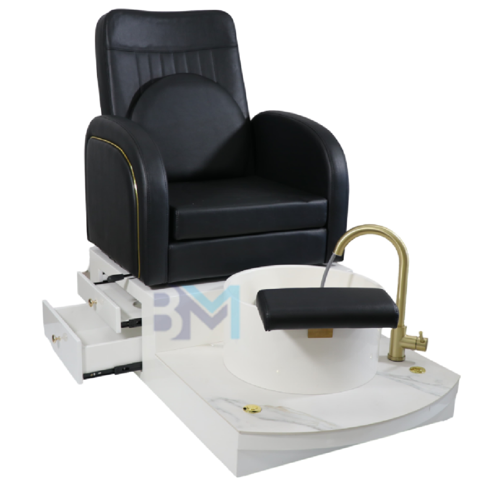 Silla de pedicura negra con pediluvio y suelo de cerámico