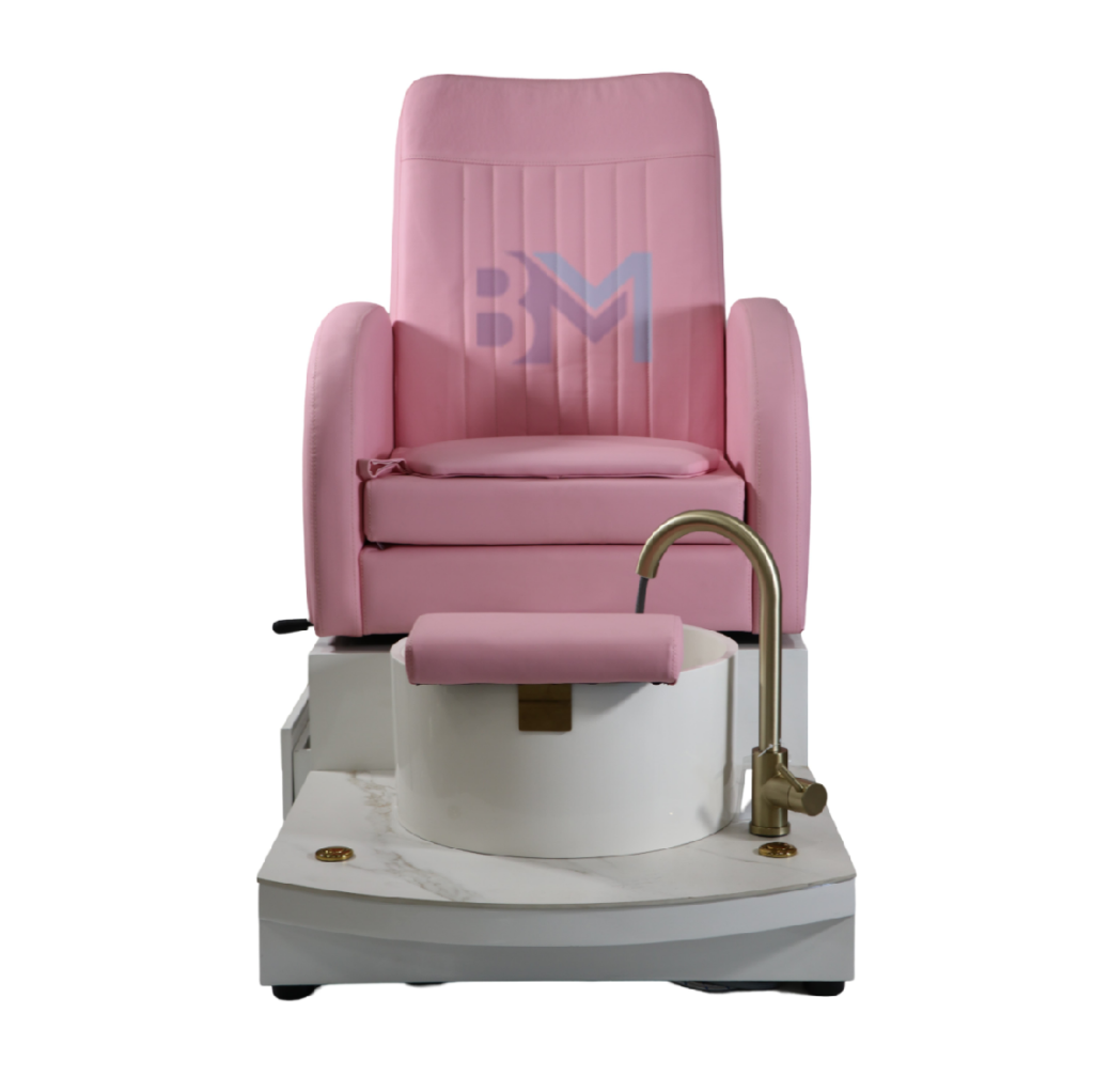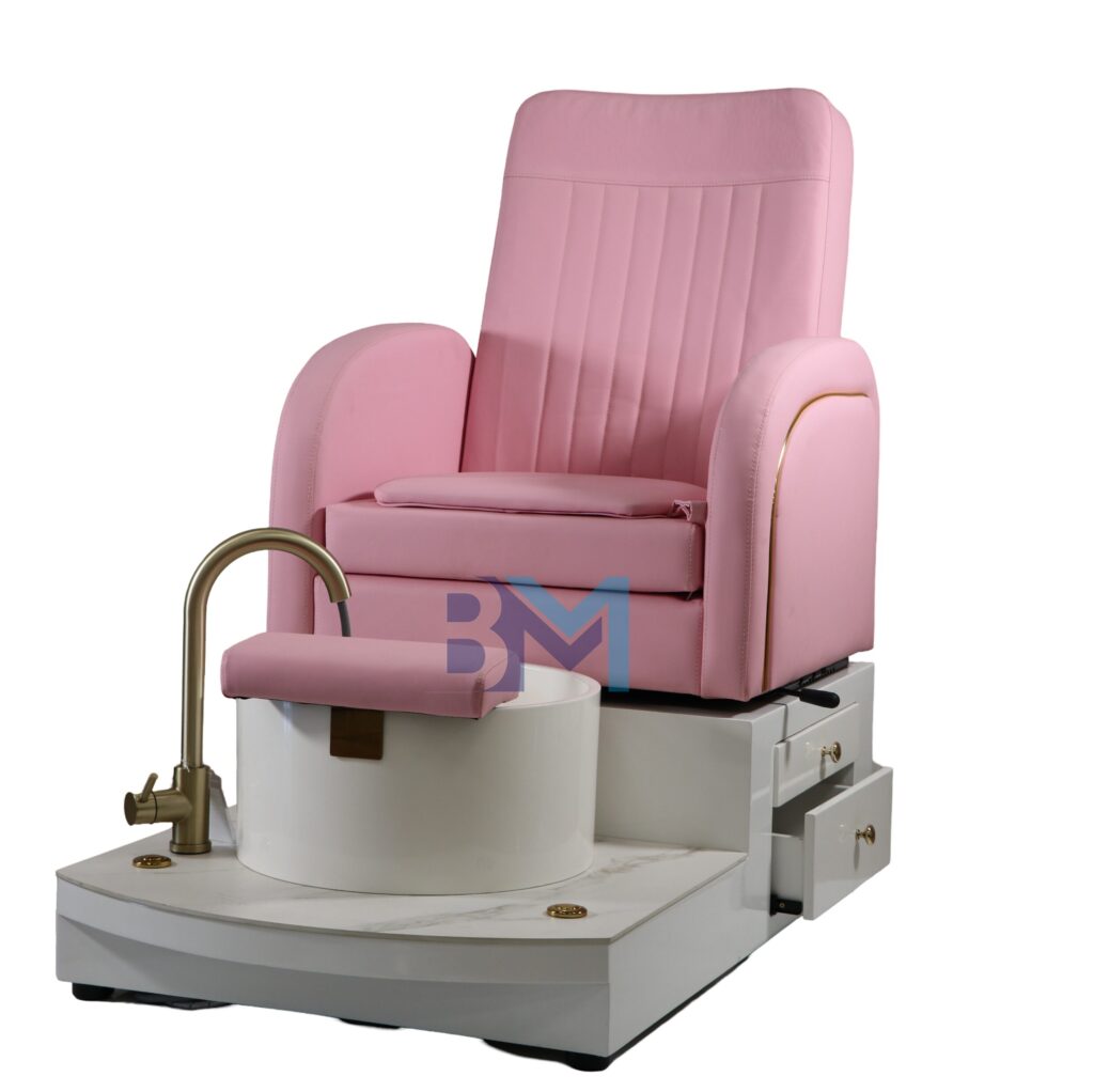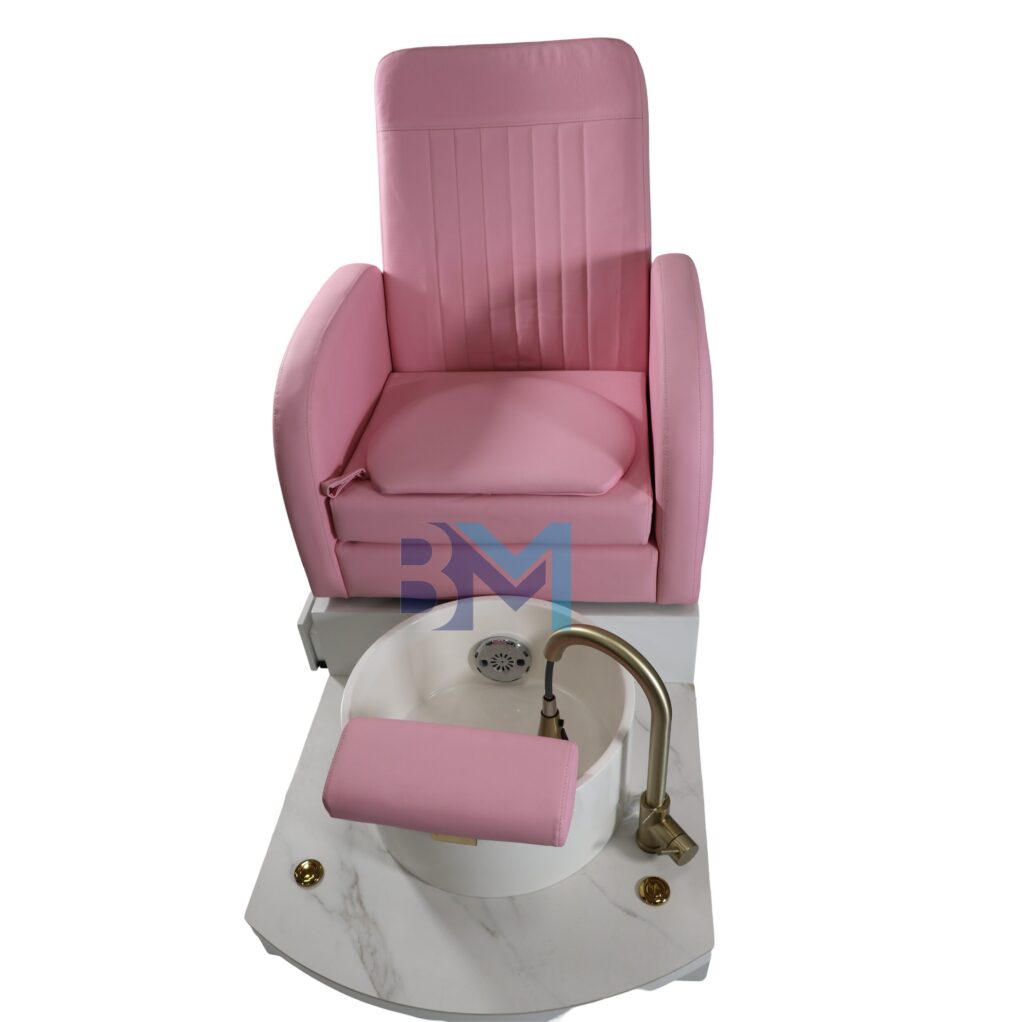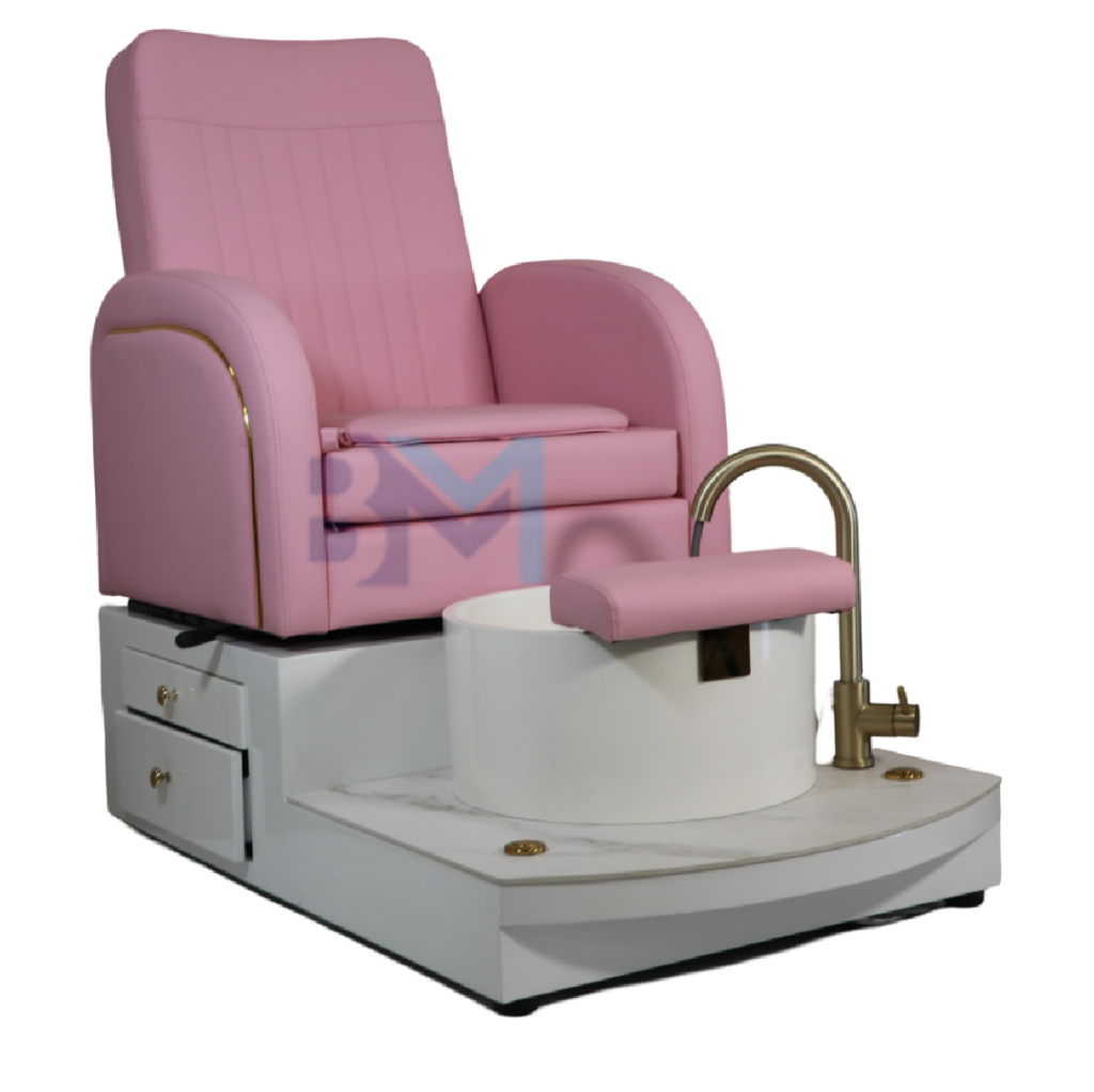 Silla de pedicura rosado con pediluvio y suelo de cerámico