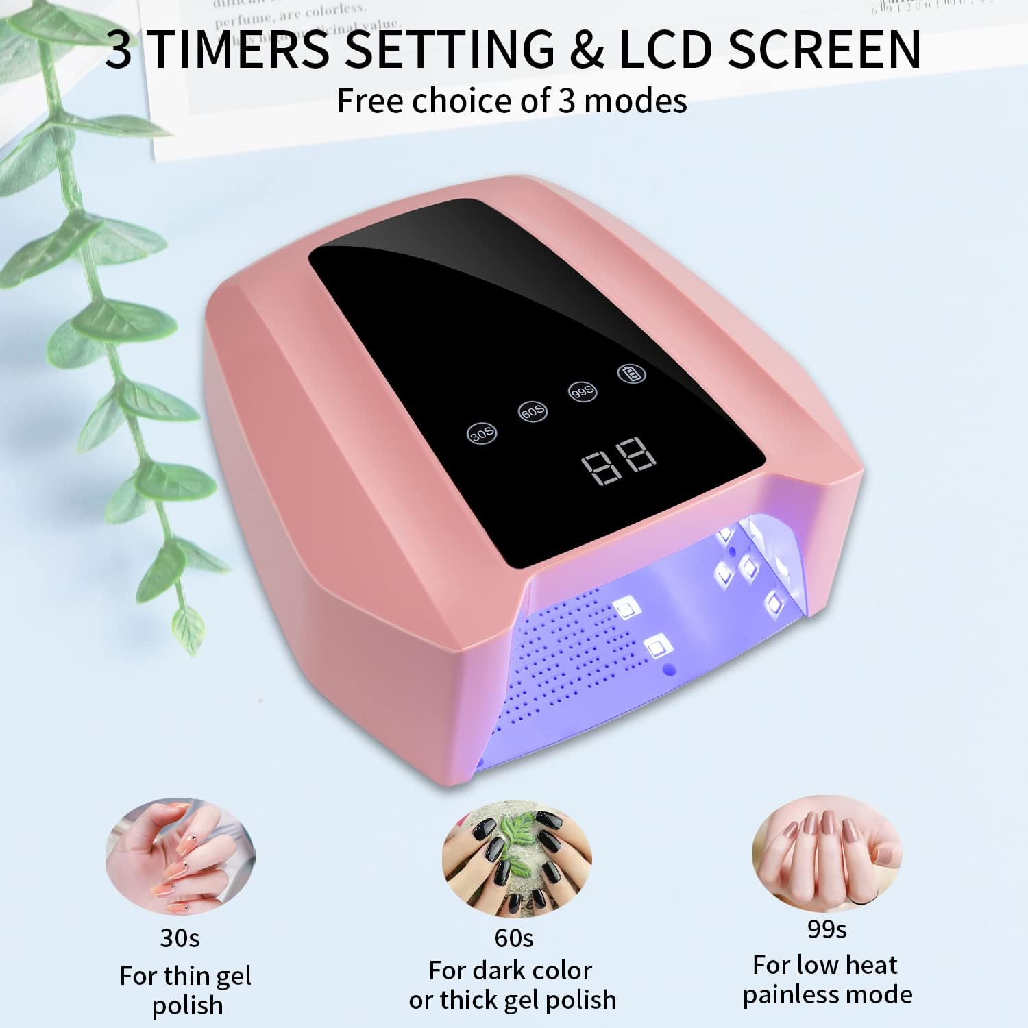 - 3 ajustes de temporizador de 30 s/60 s/99 s para curar mejor el esmalte de gel de acuerdo con tus necesidades de bricolaje y los requisitos del esmalte de gel.